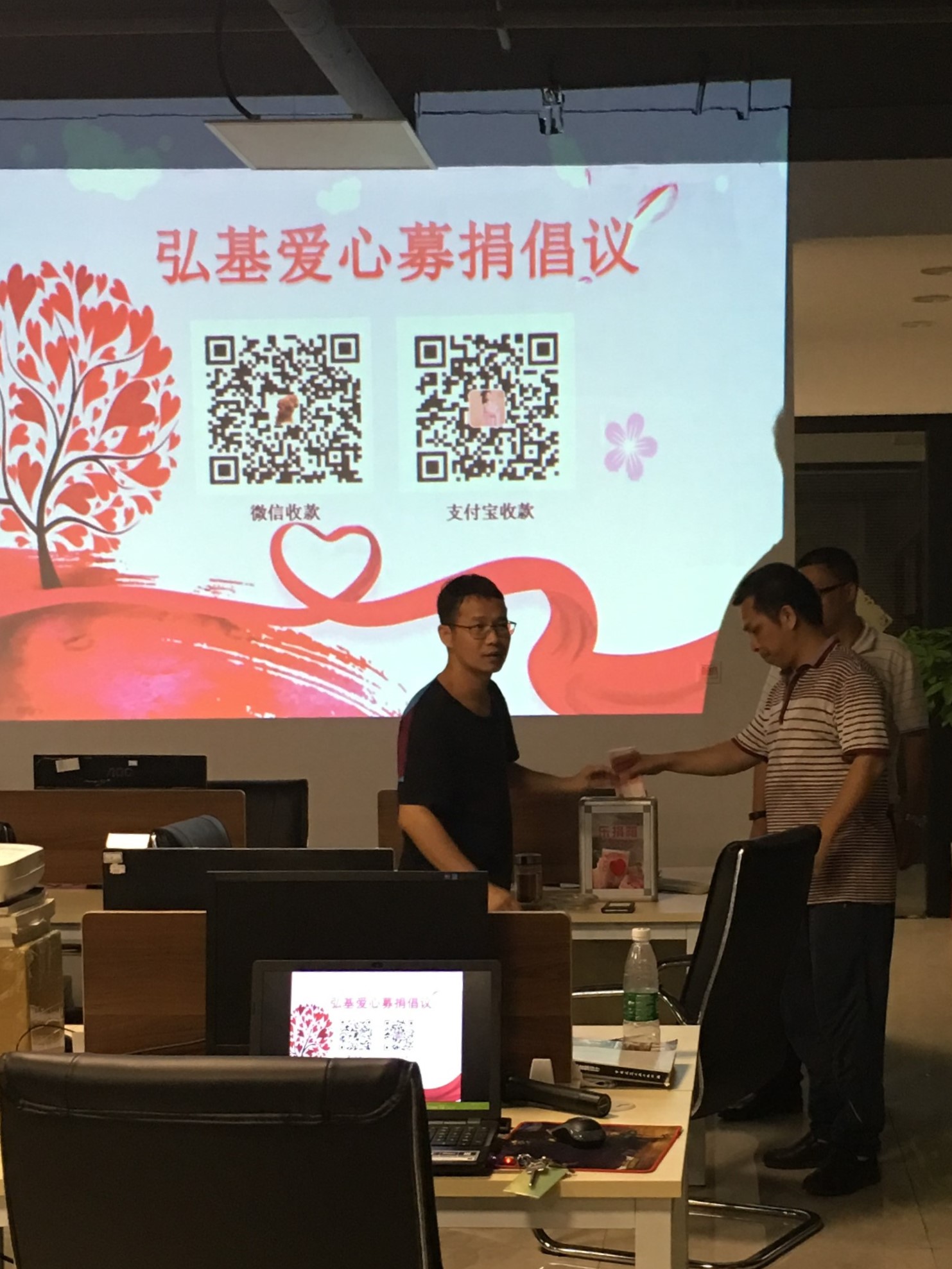4月24號晚上我公司弘基設計(深圳分院)大廳每周學習會開始之前,呈現出熱情感人的場面,“一方有難,八方支援”是我們中華民族的優良傳統,在公司袁自星院長和夏卓文副院長號召下,公司正開展為弘基員工的患癌父親現場獻愛心活動,公司的同事自愿積極地向遇到困難的同事伸出了愛的雙手。“創造價值,回饋社會”,這是弘基設計的企業使命,也是社會責任,“團結、自信、堅韌、創新”這是所有弘基人所秉持的弘基精神,也是團結奮斗的弘基人行為準則。