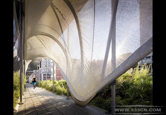 據報道,英國建筑師扎哈-哈迪德為紐約的高線公園,設計了具有保護功能的雕塑風格的人行道。