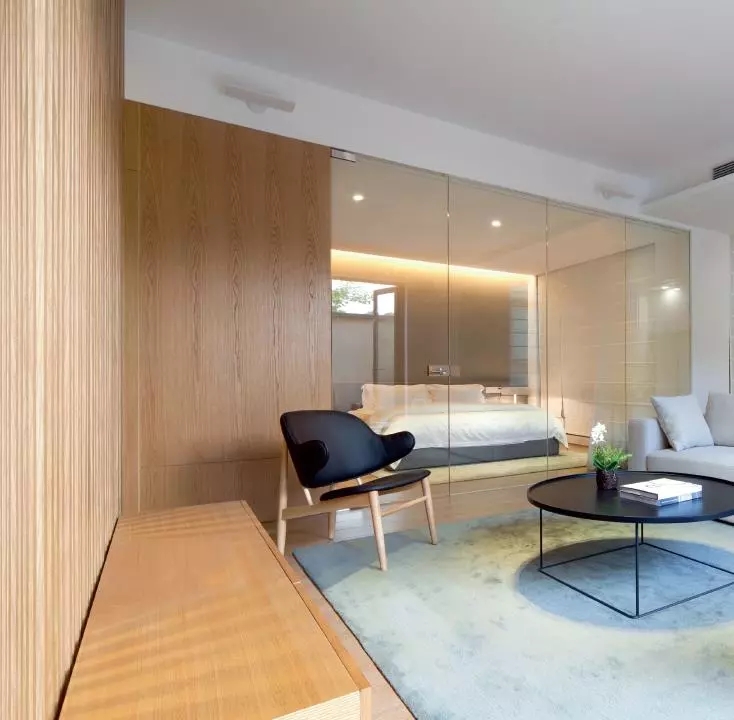 空間摒棄繁瑣,以白色、原木色為主調,配合玻璃和開放布局,打破空間界限,增加視覺面積。能感受到在簡潔中追求極致體驗的設計,也能感受到樸素 的美感。生活隨心,何不在此放下所有,靜享一方寧靜。