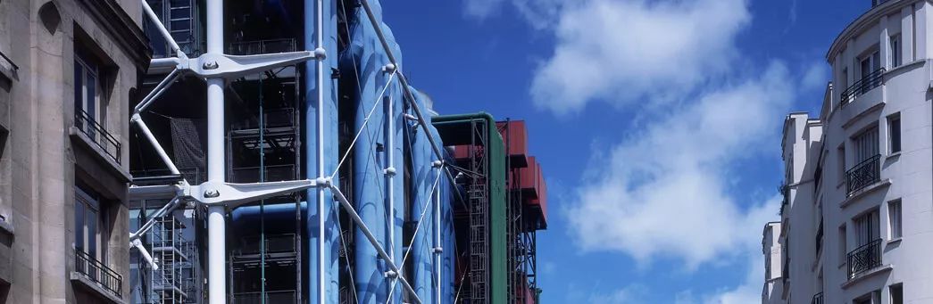 時光倒退半個世紀,1977年,巴黎拉丁區北側、塞納河右岸的博堡大街上突然矗立起一座奇怪的建筑:整個大樓由28根圓形鋼管柱支承,內部空間除去一道防火隔墻外毫無阻礙。從外部看去,鋼架林立、管道縱橫,儼然一座散發著濃烈工業氣息的現代工廠。這就是英國建筑師理查德·羅杰斯最知名的作品之一——巴黎蓬皮杜藝術和文化中心。