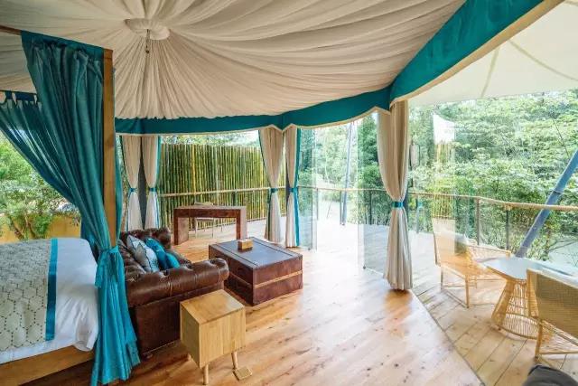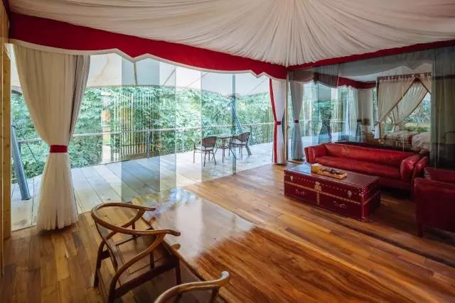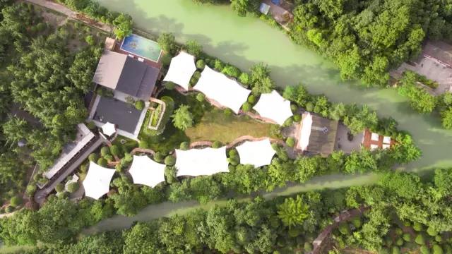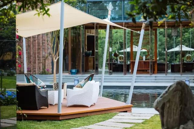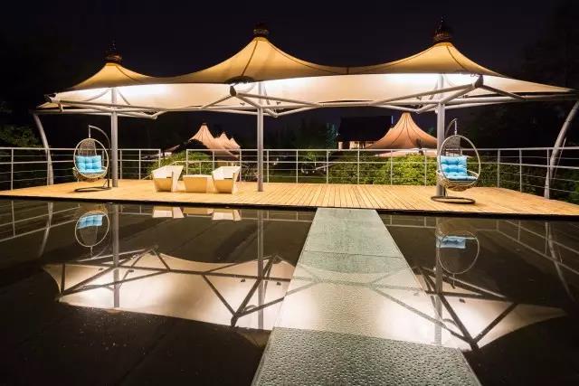 一個供客人休憩的小型室外帳篷亭子赫然眼前。