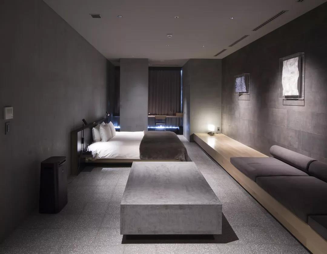 酒店的房間內是一種性冷淡的風格,以木制品與黑色元素相互碰撞,創造出一種具有禪意的深沉意境。