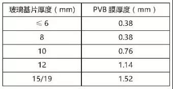 此外,其玻璃基片厚度及PVB膜厚度常用參數(shù)如下