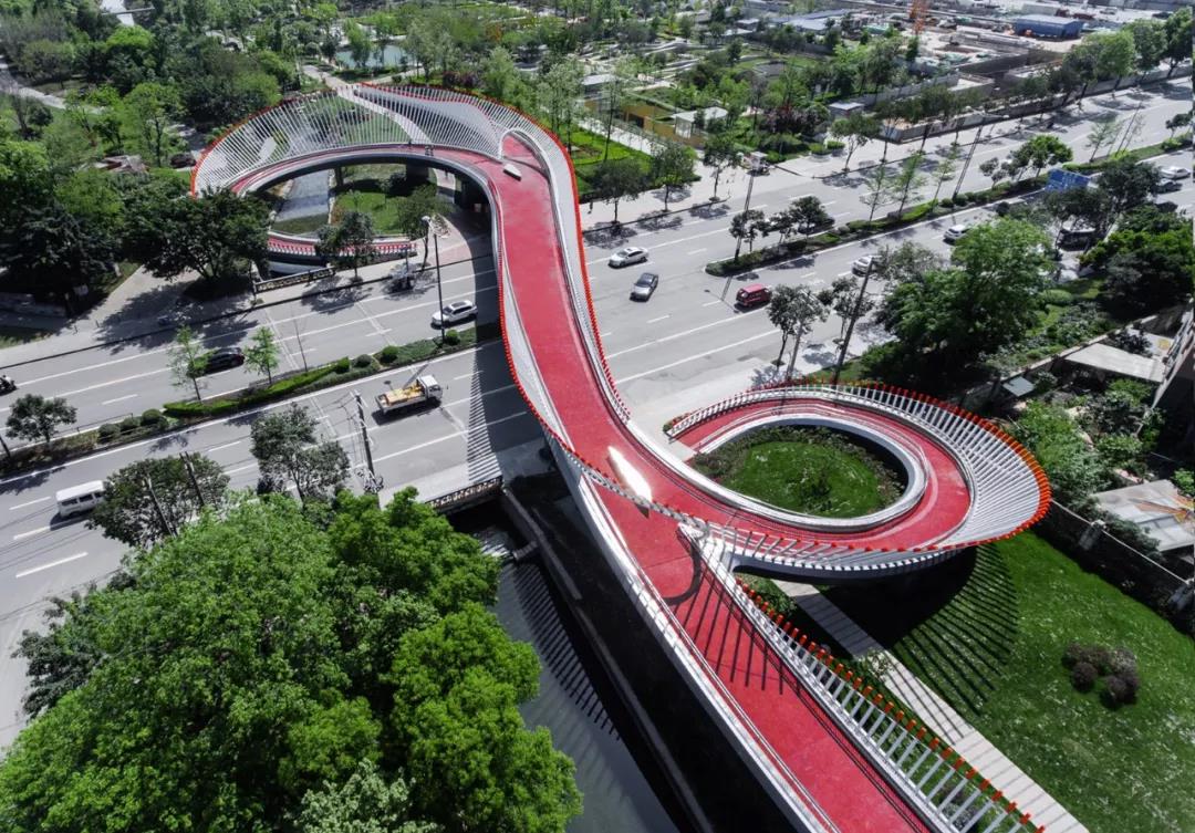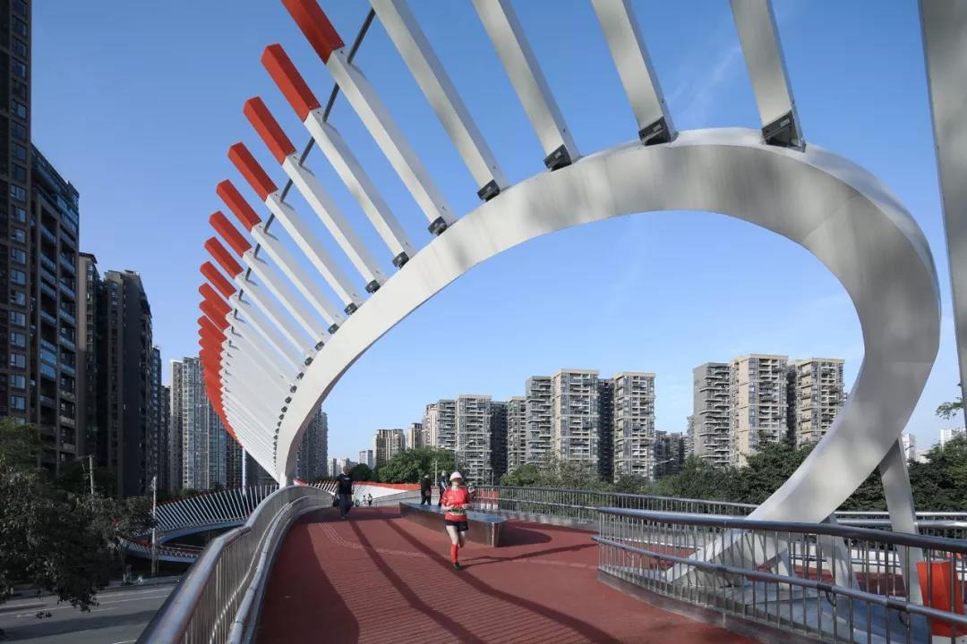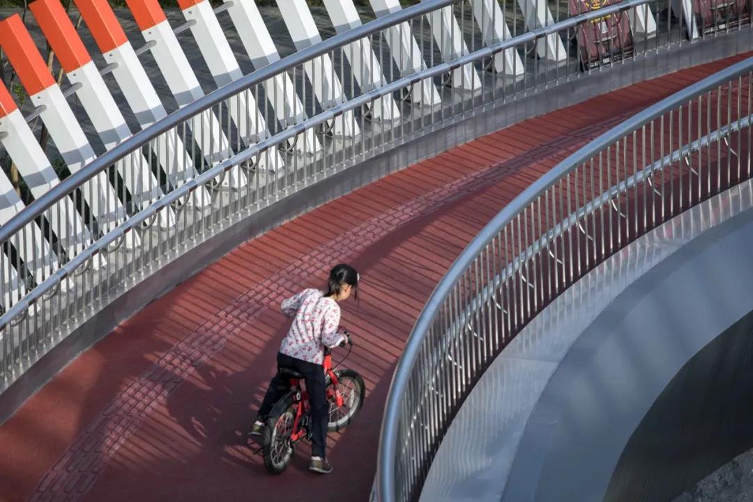 橋梁連接了南側(cè)大源公園與北側(cè)城市空間及綠地,人行步道及自行車綠道得以連接和延續(xù)。