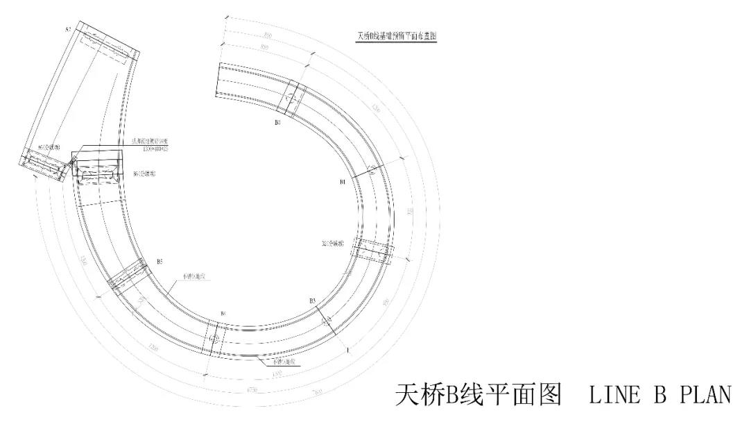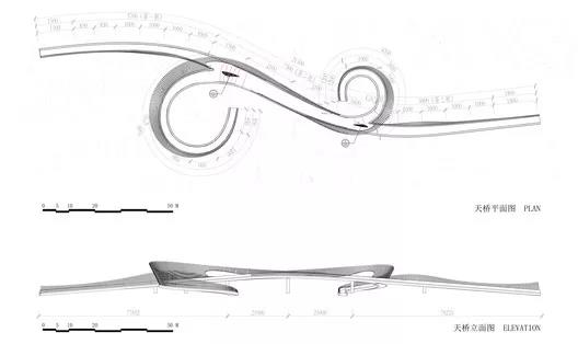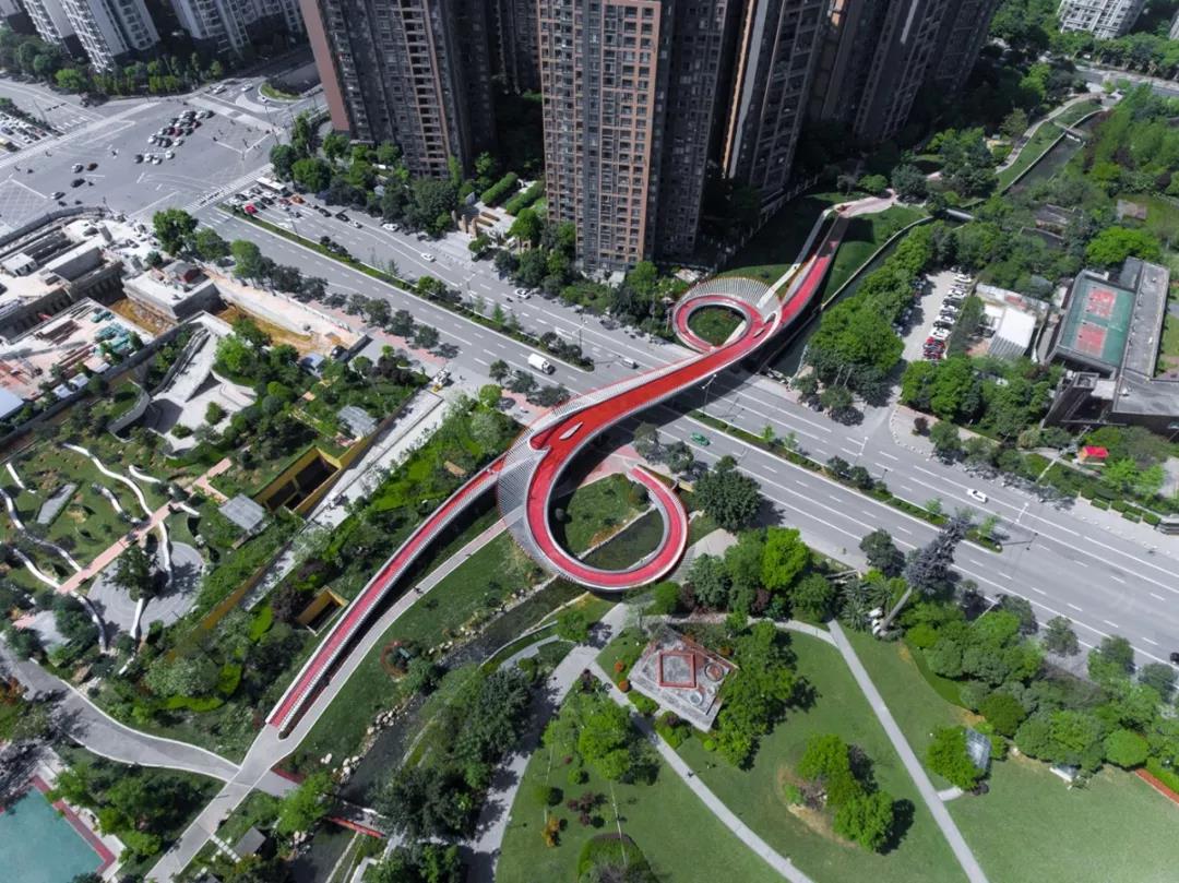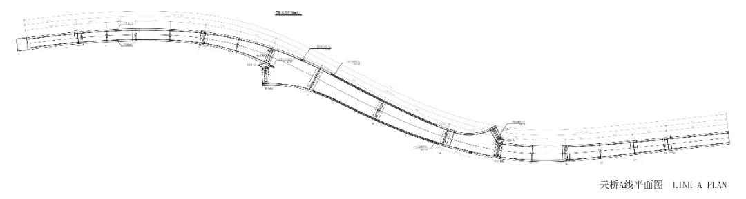 2018年2月項(xiàng)目建成,以“成都高新區(qū)綠道標(biāo)志性節(jié)點(diǎn)”再度為多家媒體集中報(bào)道。天橋設(shè)計(jì)平面呈“如意”形。跨天府二街部分為等截面預(yù)制鋼箱梁,長42m,主橋2跨跨越現(xiàn)狀天府二街,中墩布置在現(xiàn)狀道路中分綠化帶處,邊墩布置在人行道及外側(cè)綠帶內(nèi)??缣旄植糠衷O(shè)計(jì)跨徑組合為21m+21m。