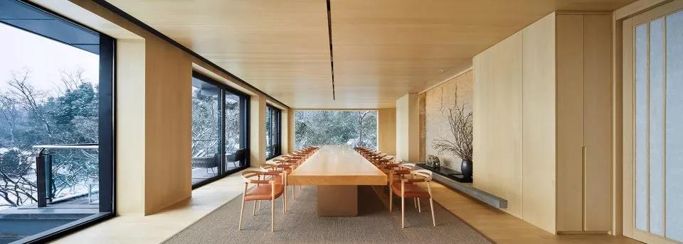 ▼洽談空間, 大尺寸中空玻璃形成巨幅畫卷,隨著冬去春來不斷變化
