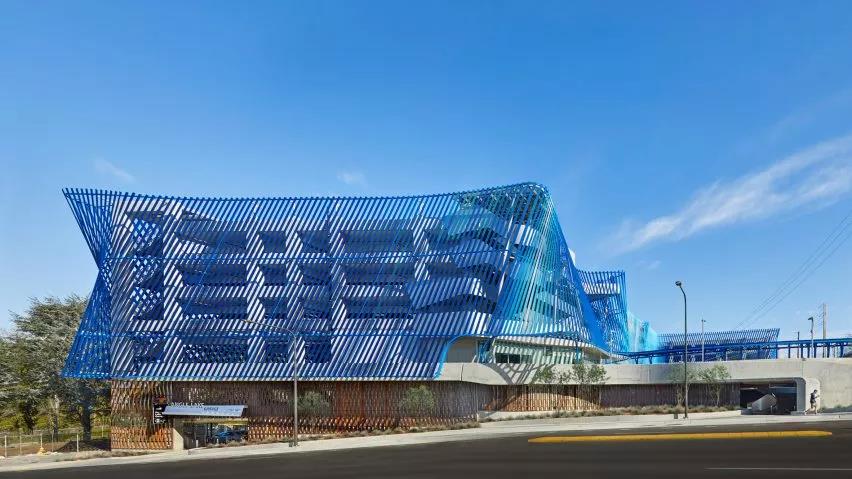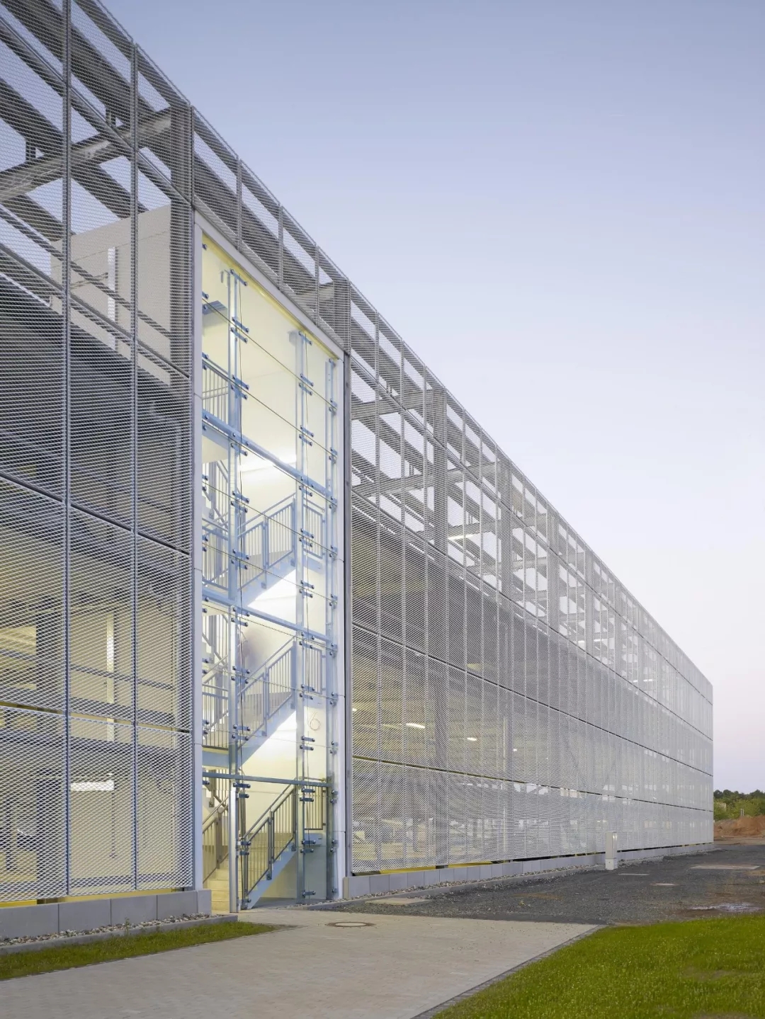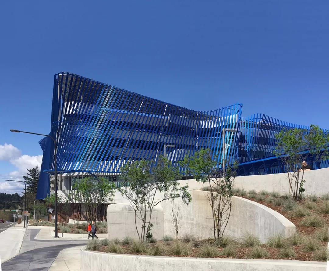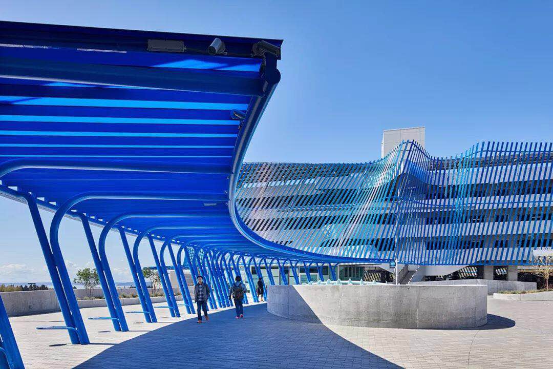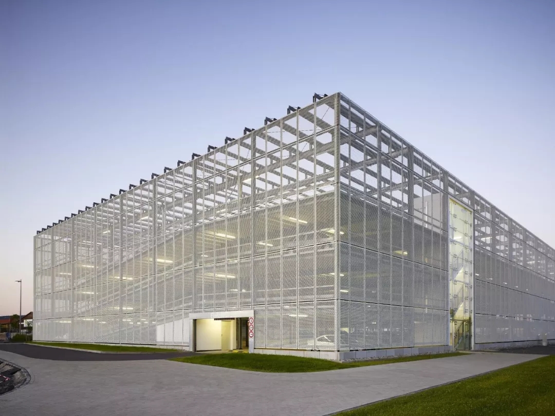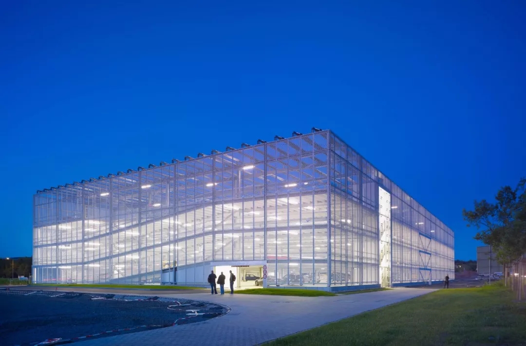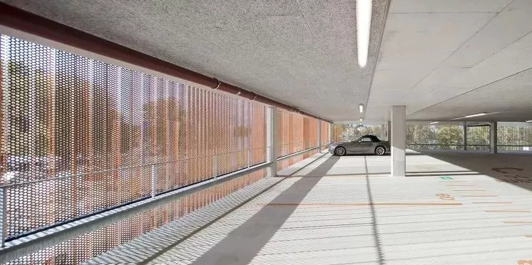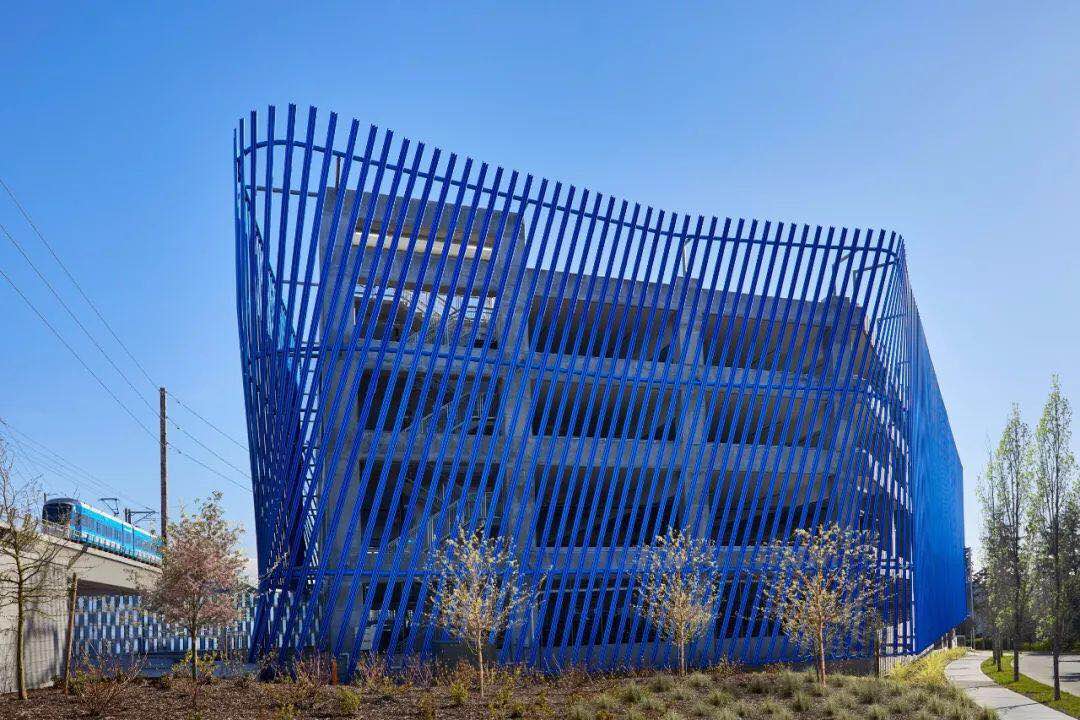 地上停車的空間外圍被一層輕質(zhì)的金屬外表皮遮蔽