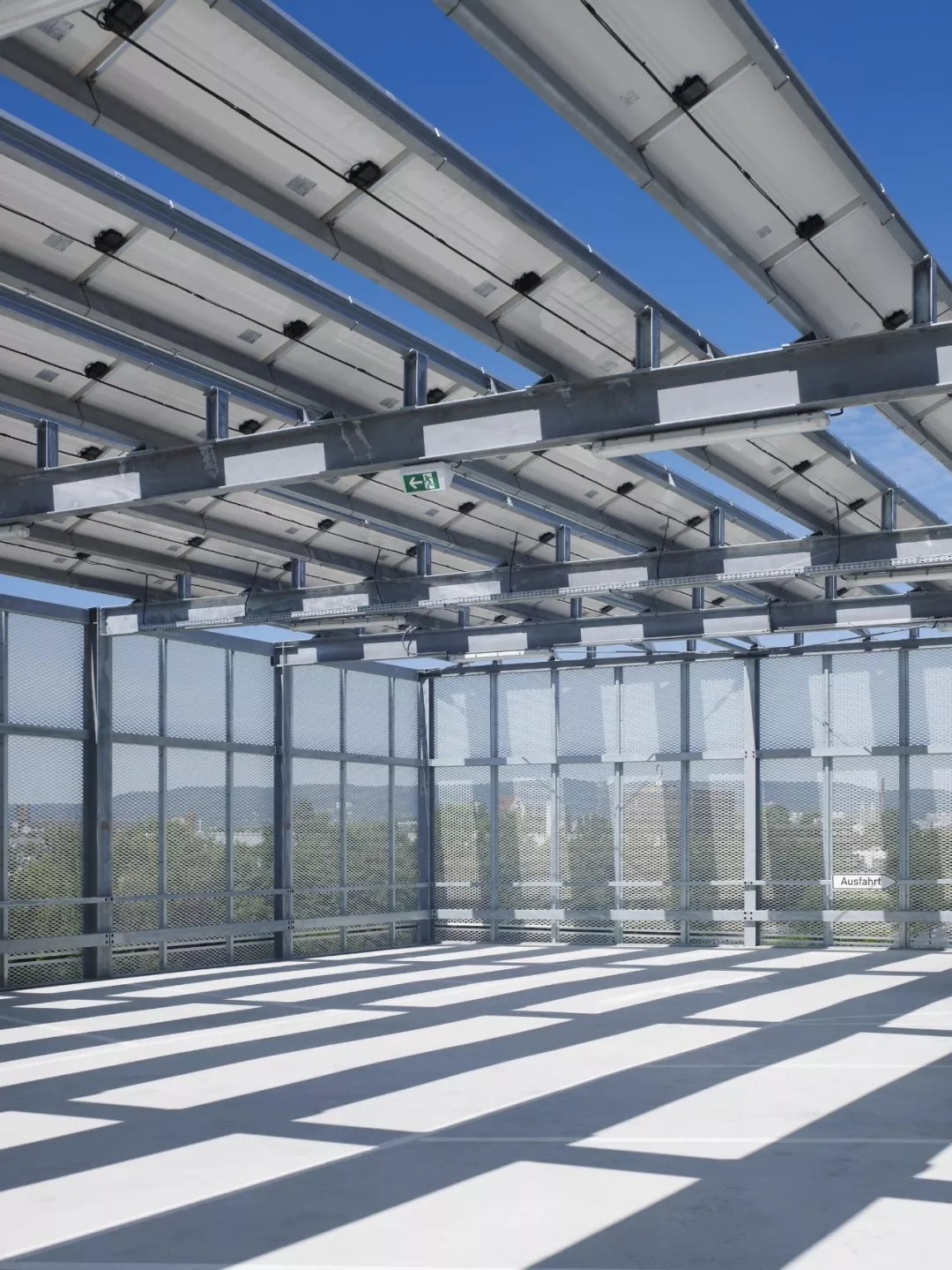 太陽能電力系統(tǒng)覆蓋停車場頂層的空間