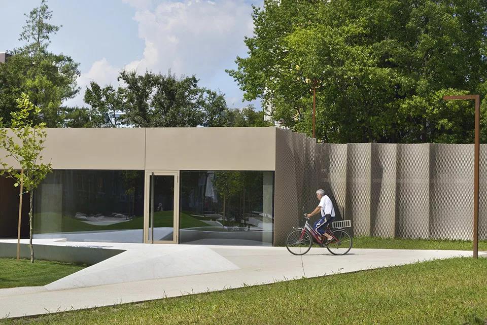 微微暖調(diào)的金屬外殼幾乎完全覆蓋建筑