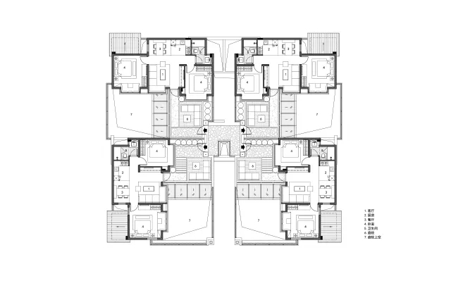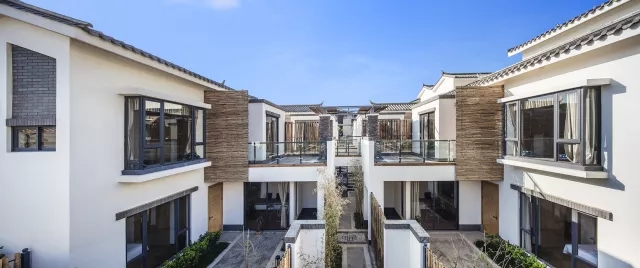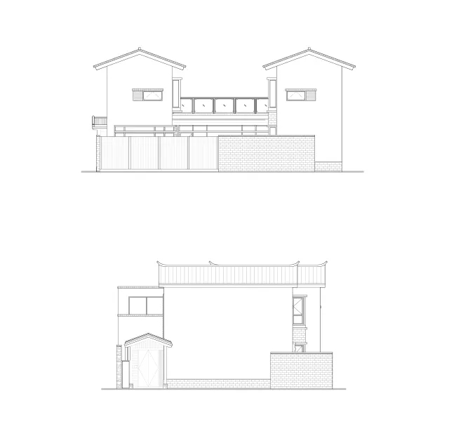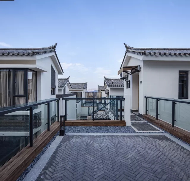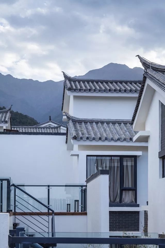 對(duì)山地院落,HMD采用“天平地不平”的做法,通過筑臺(tái)、懸挑高低變化等營(yíng)造參差錯(cuò)落的層次,與視野之中的蒼山、洱海建立起美好的聯(lián)系。在院內(nèi),從大理人所喜愛的廊廈空間中汲取靈感,營(yíng)造怡人的活動(dòng)空間——從曬太陽(yáng)、吹涼風(fēng),到聊天、聚餐、喝茶,提供典型的“大理式休憩”場(chǎng)所。同時(shí),賦予院落功能上的彈性,為生活機(jī)能的轉(zhuǎn)換預(yù)留空間。