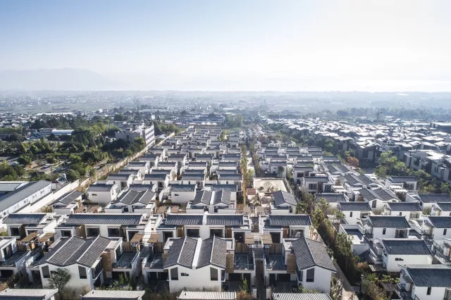 基地位于大理蒼山腳下,洱海之濱,東側(cè)與村落接壤,一條茶馬古道穿過場(chǎng)地。214國(guó)道則連接起場(chǎng)地與大理古城、大理市區(qū)。規(guī)劃面積達(dá)到979,628.28平方米,主要承載居住功能。