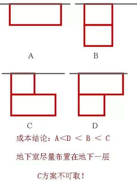 盡量減小地下室無用面積的范圍