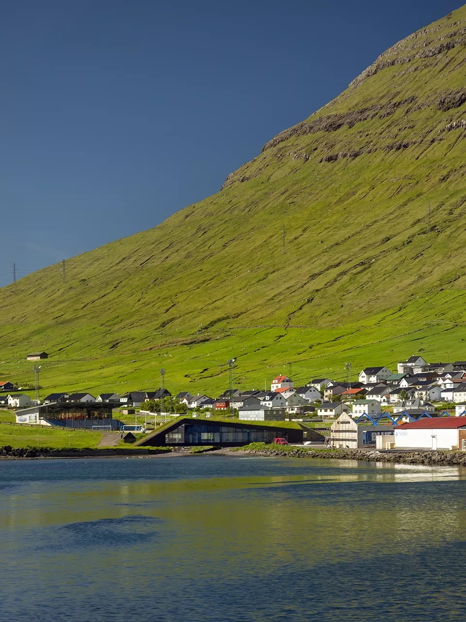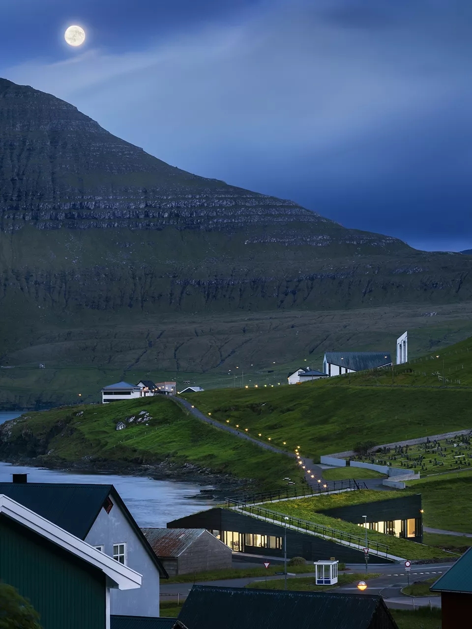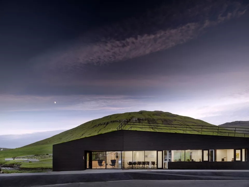 對于Eysturkommuna的居民而言,參觀當地市政府可謂一次令人難忘的體驗。市政廳坐落在法羅群島的景觀深處,與自然環境完全融為一體。布滿綠植的屋頂使其不再只是一座小型的建筑物,而是將市民連接至河流對岸的橋梁。