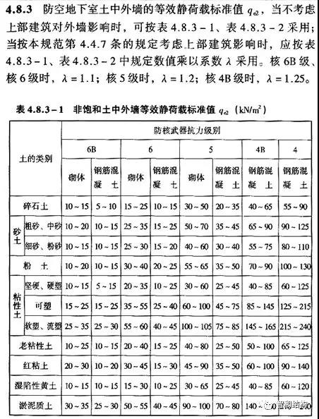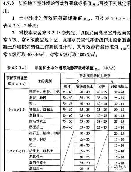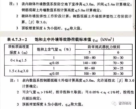 核規(guī)武器爆炸產(chǎn)生的水平等效靜荷載,見下表: