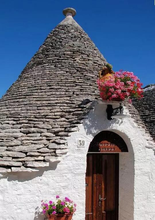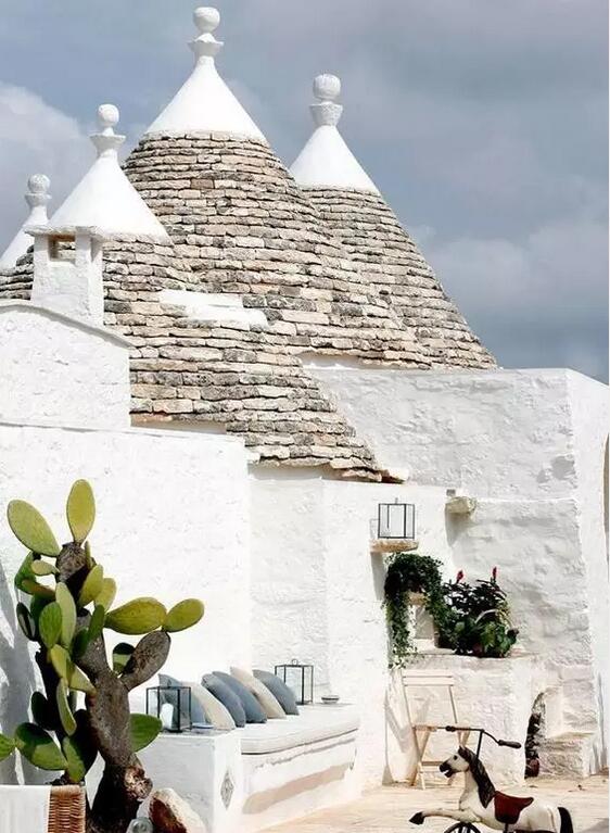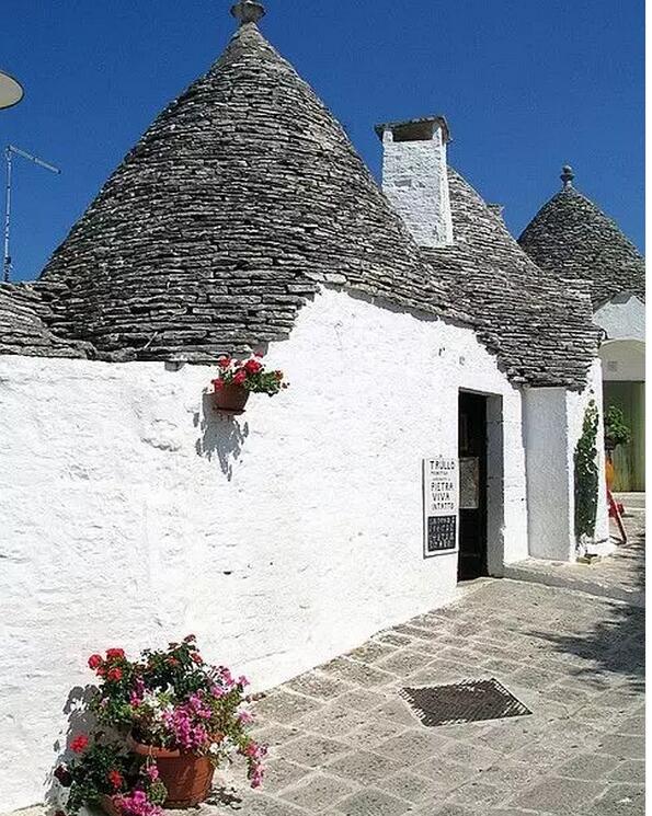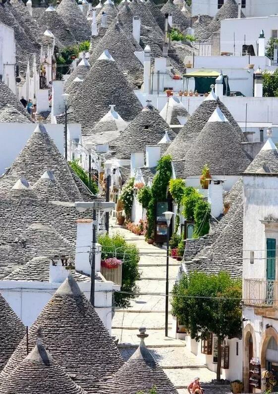 意大利的阿爾貝羅貝洛(Alberobello)被稱之為“天堂小鎮”。原是自然條件最差的不毛之地,最早的石屋可追溯到12世紀,16世紀開始越來越多逃避天災人禍的難民逃到這里,就地取材用石灰屋建屋。