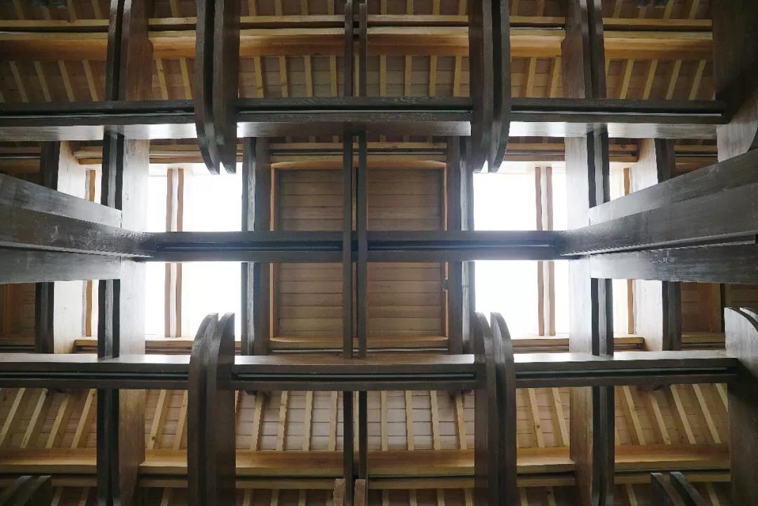 所有梁和柱通過榫卯的方式咬合在一起,形成了“散柱復梁”的屋架體系,沒使用一根釘子。