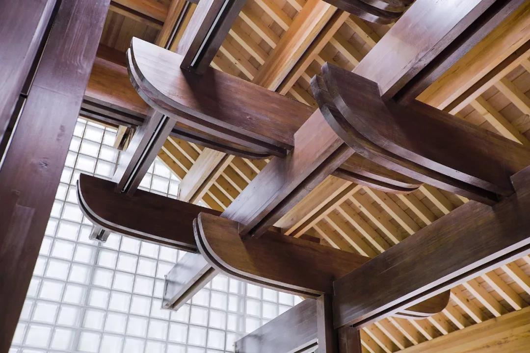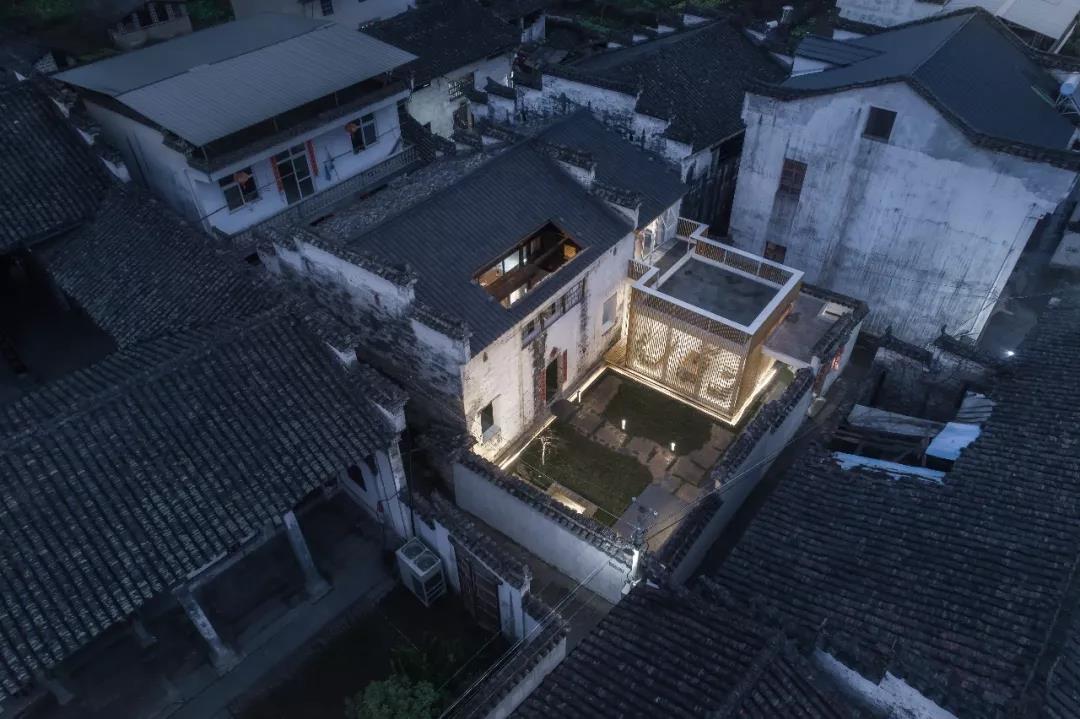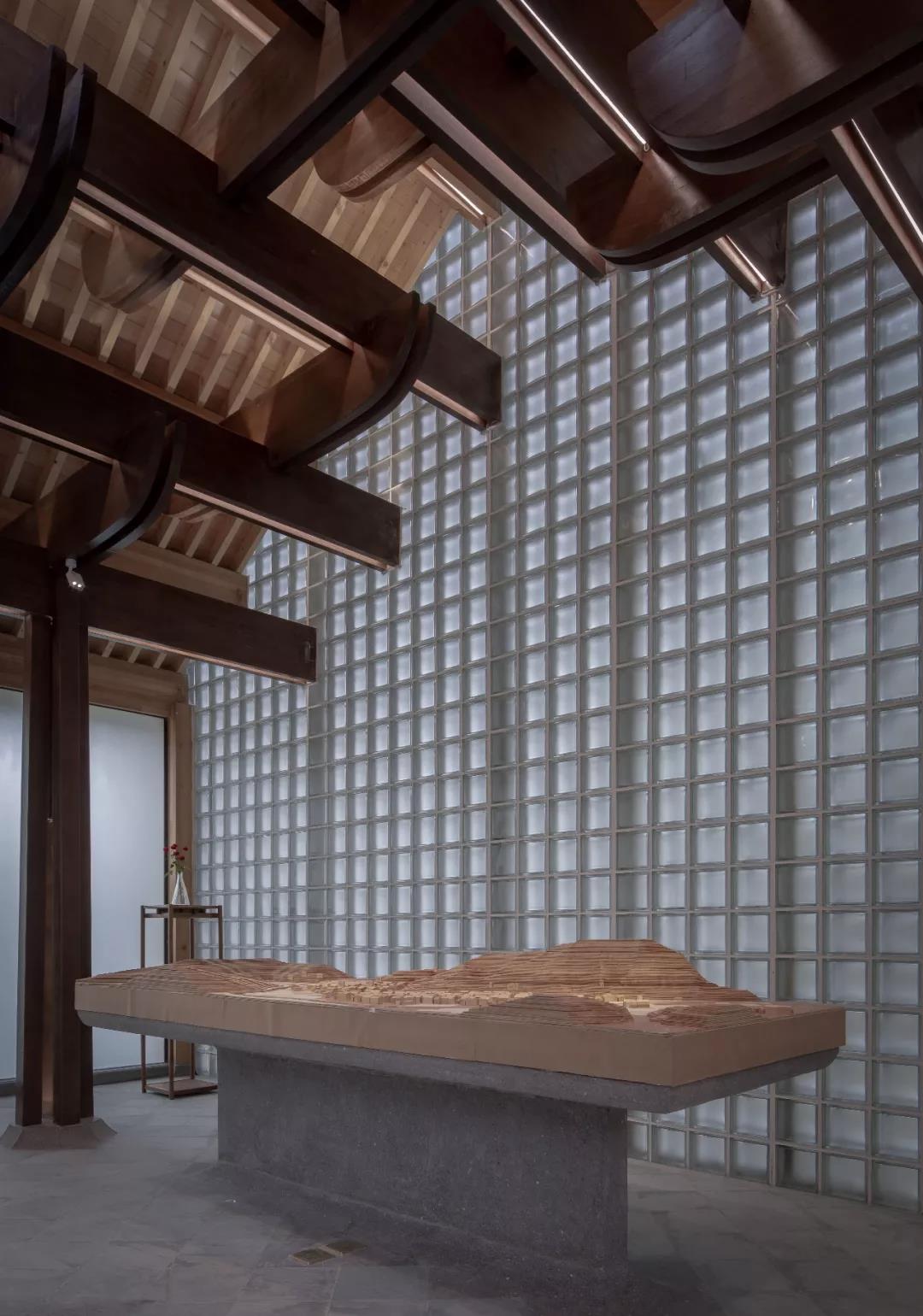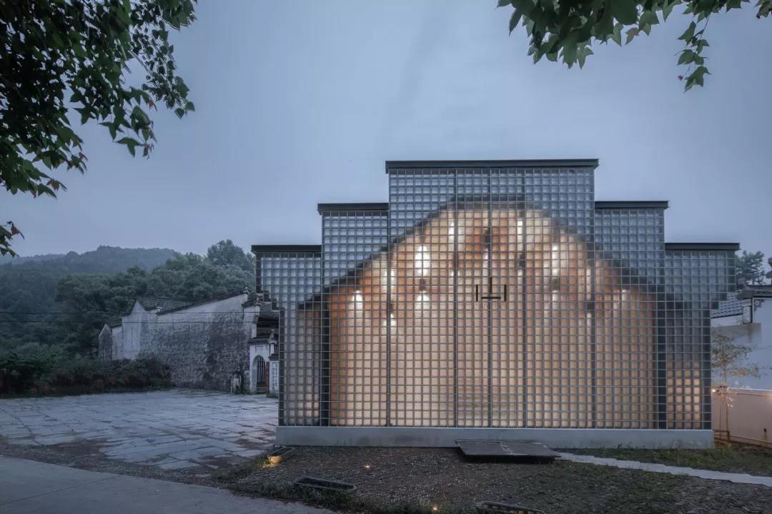 用3000塊玻璃磚砌了一整面馬頭墻,一改傳統馬頭墻的封閉感,里面木結構的虛影呈現在外部。