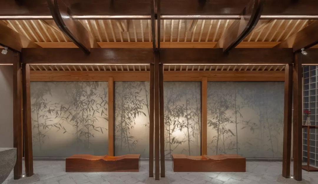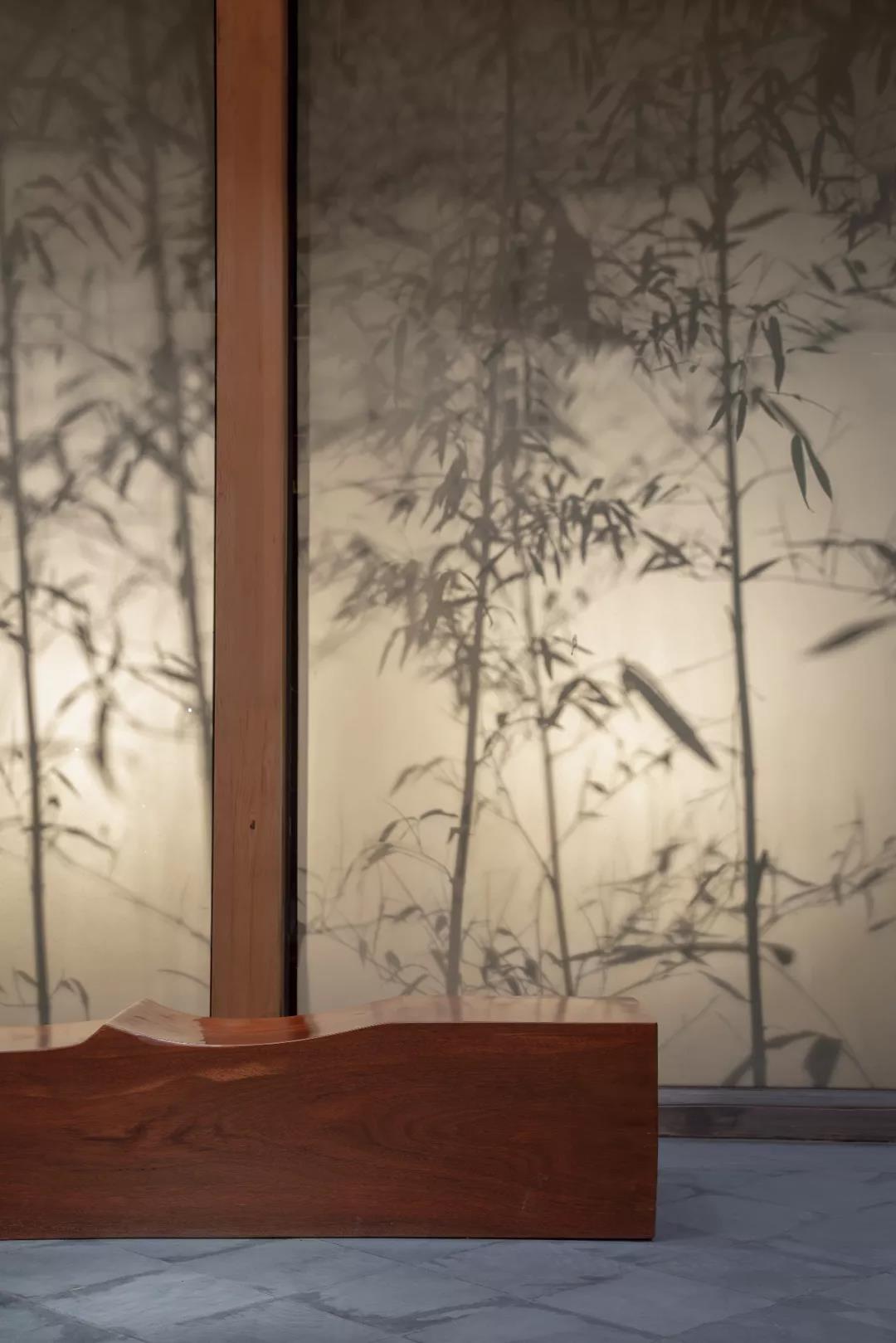 我們把生長在外部的竹子,通過光影的方式投射到這面半虛的玻璃墻壁上。竹影婆娑,隨風搖曳,充滿整個室內。
