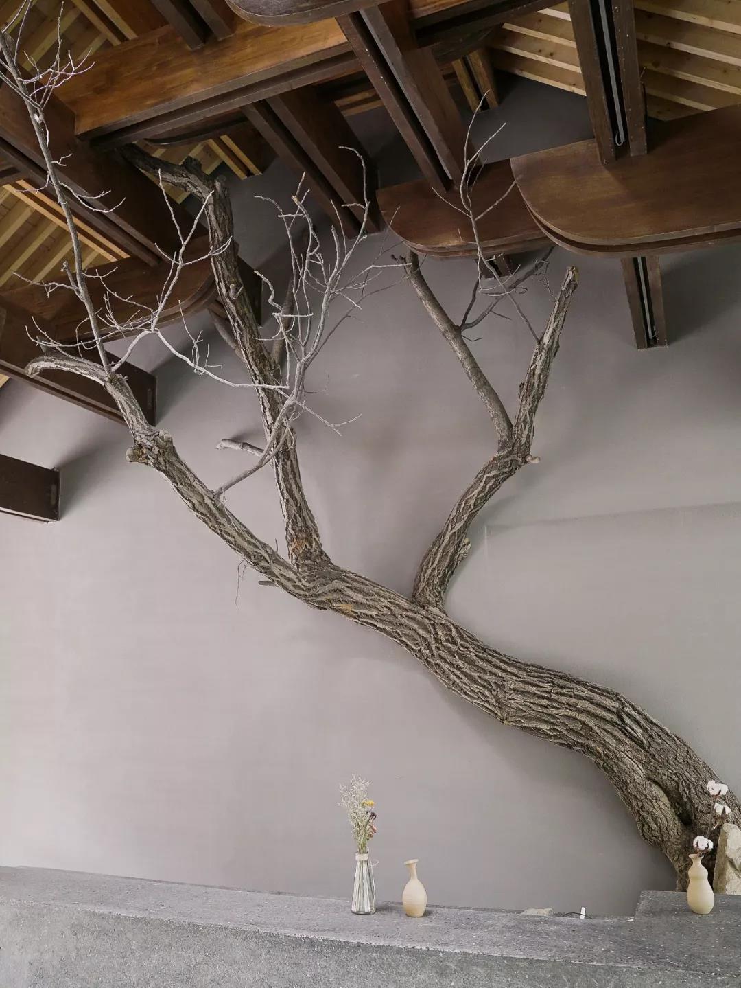 我們專門從800公里以外的苗圃園中,挑選了一棵彎曲的棗樹,砍下、運回,未經修飾,掛于墻壁之上。