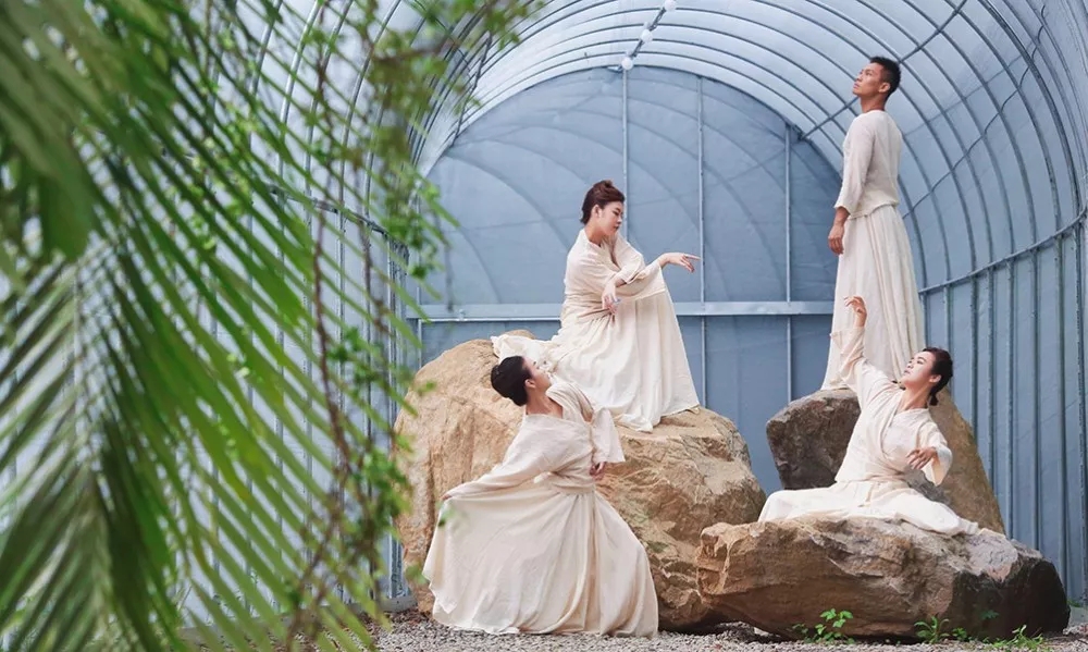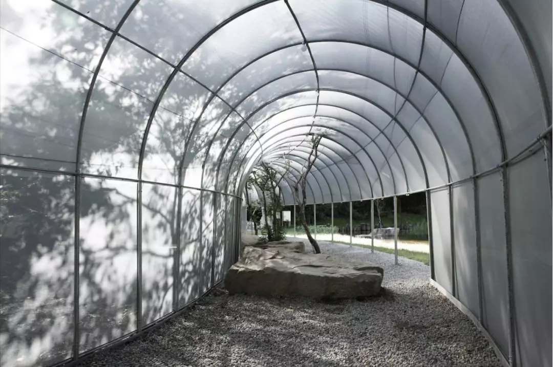 大棚是人們活動的路線,連接著水池、廊橋;也是教室,花藝老師、舞者都能找到適合自己的角落。