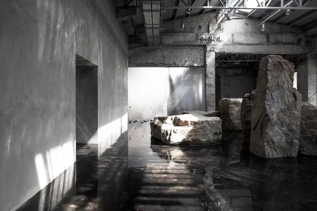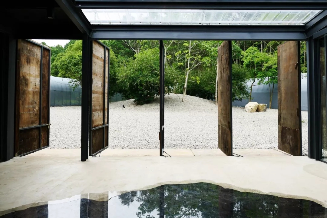 原本的仿中式水族館,改造成作為工作坊、用餐區的主屋。中式的屋頂保留下來,變成了灰色,在自然中不會突兀。