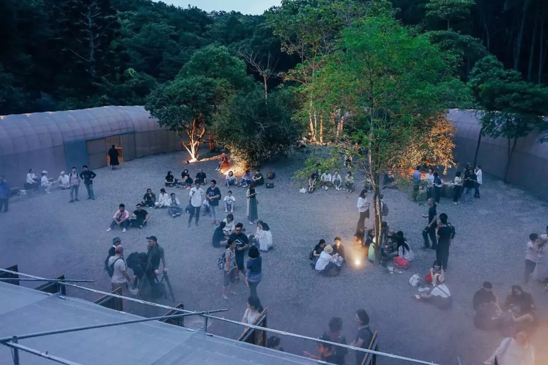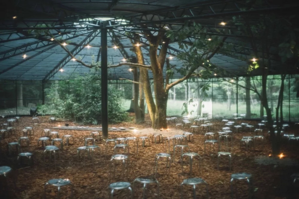 輕質的設施,讓所有的風和光線都能引入到劇場,聲音也是內外互通。開幕的時候,我邀請日本的頌缽老師來表演,音樂傳入樹林,外面的蟲鳴鳥叫會回應回來。