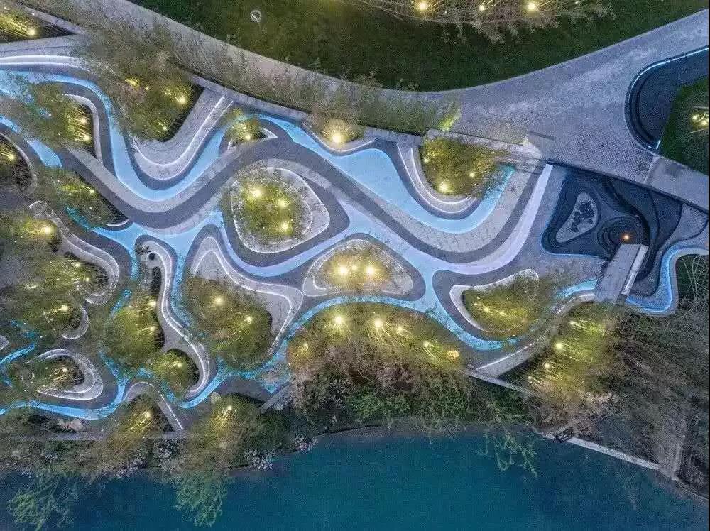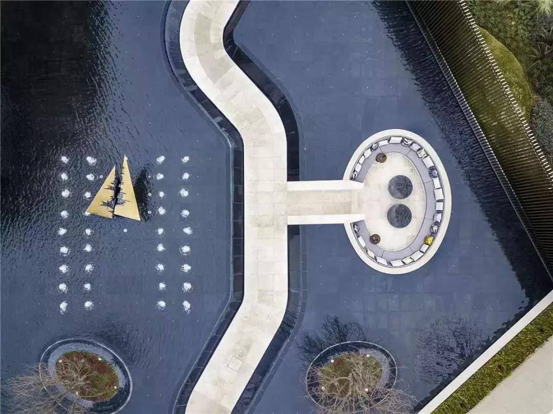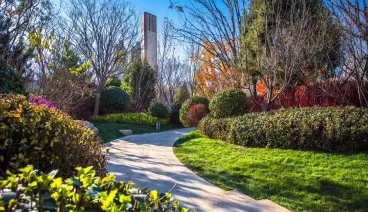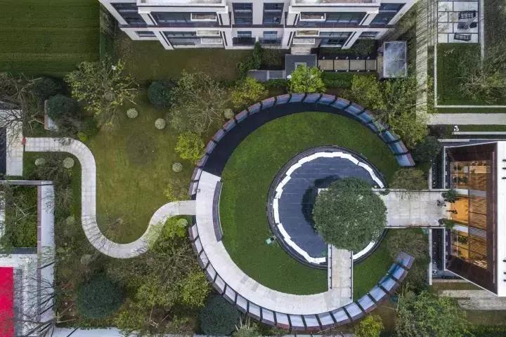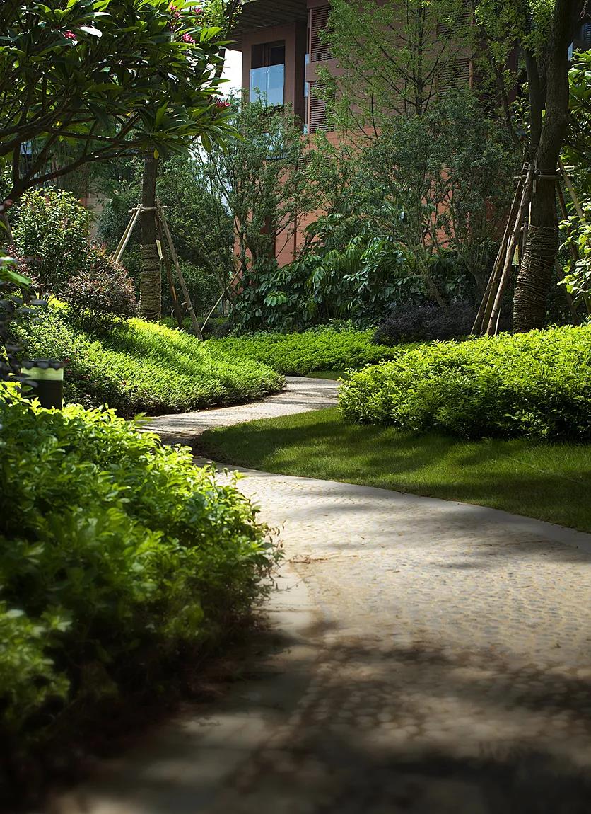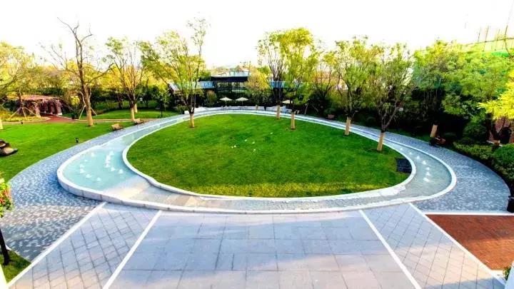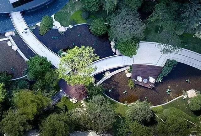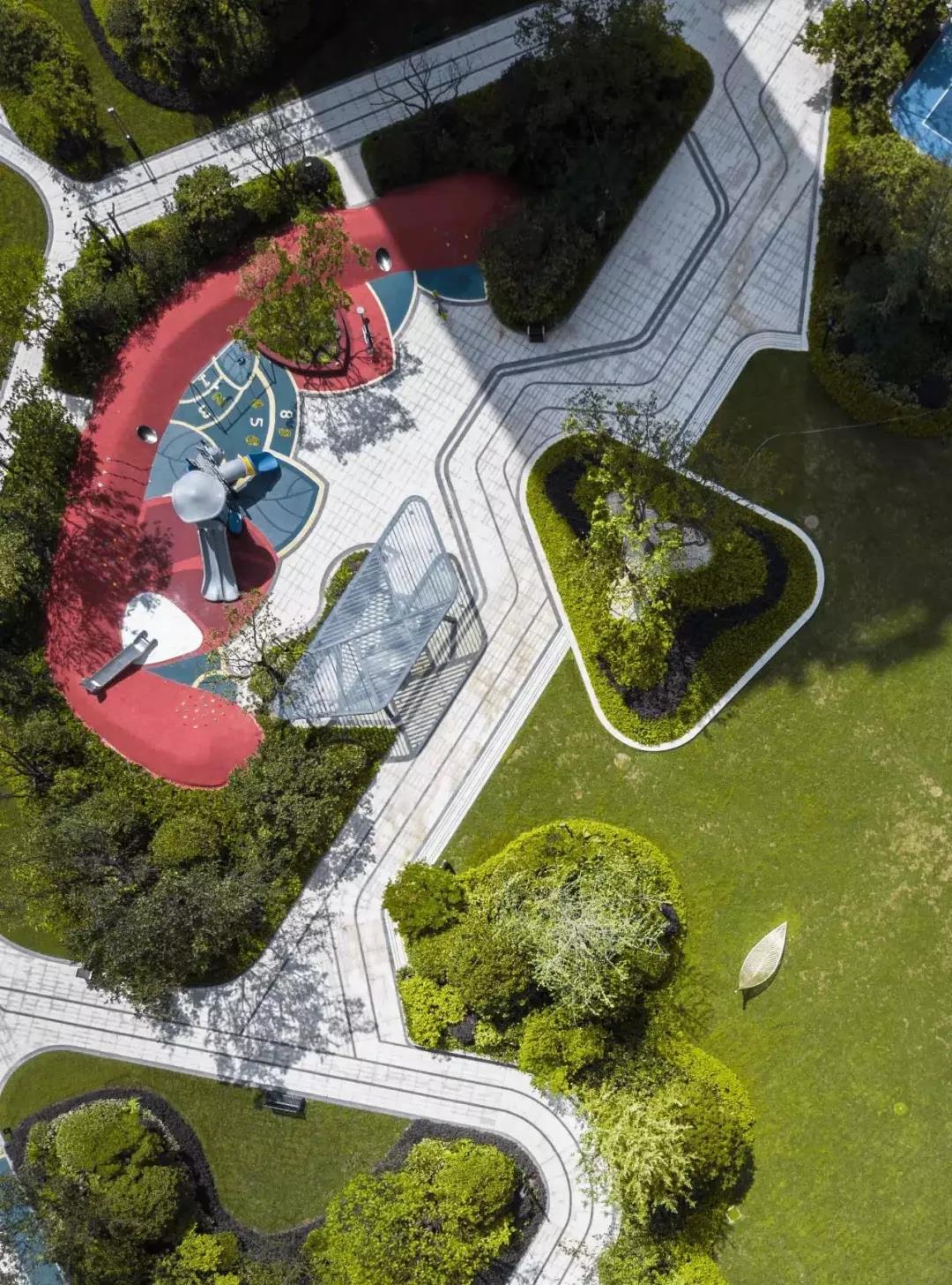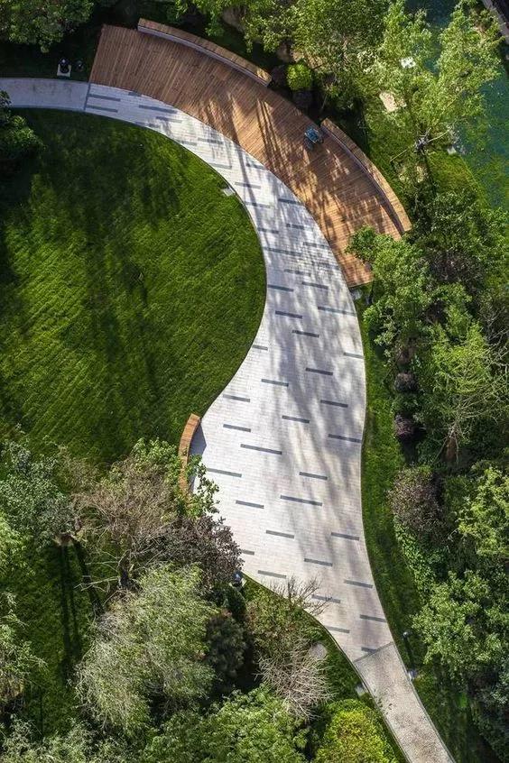 弧線園路自然流暢張弛有度,連接著各個區(qū)域,不僅滿足功能也是一道風景。