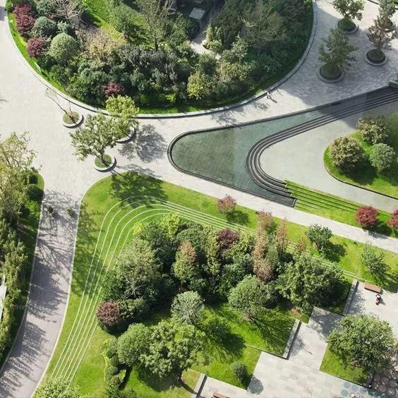 小編來帶大家欣賞一下,那些各大示范區(qū)景觀中,那些弧線形園路。