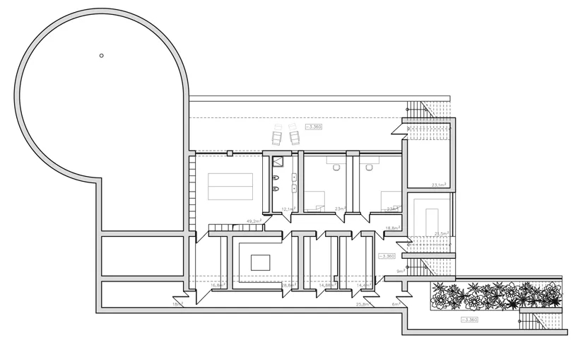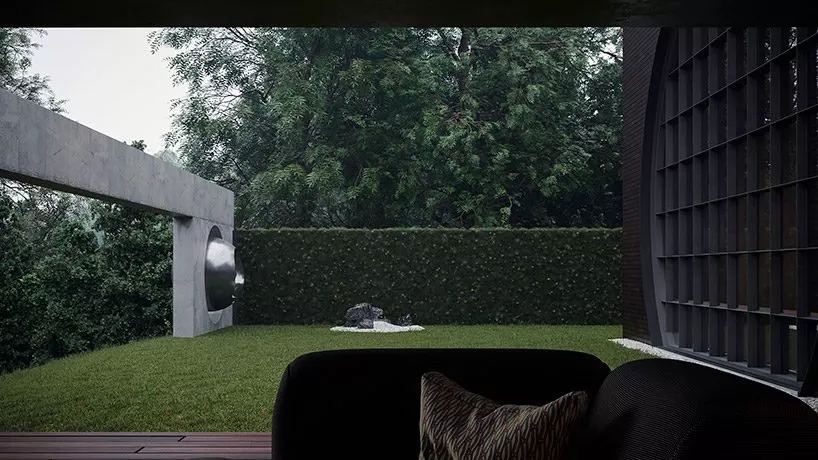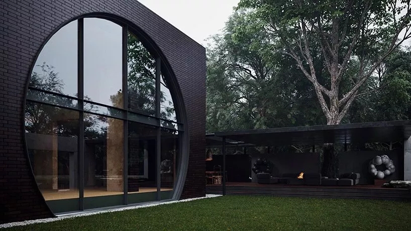 房子的后面,設置了車庫和花園的主要入口,而且使用了大量圓形結構,類似于中國的月亮門,也呼應了住宅名字中的oko。
