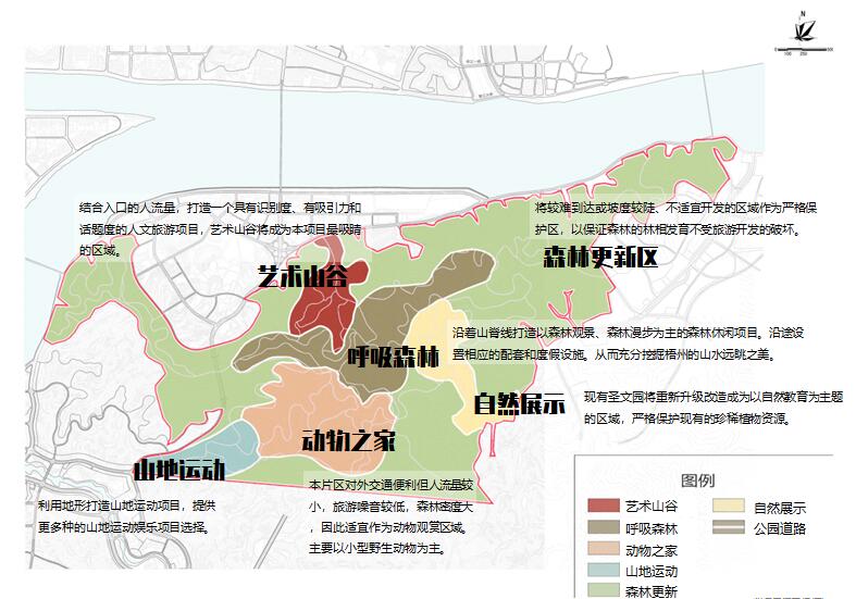 設計目標:打造一個以自然山水野趣為特色,集合休閑娛樂、健康養生、科普教育和生態保護為一體的城市郊野森林公園;深受市民喜愛的華南地區著名森林旅游目的地;生態旅游及森林療養勝地;梧州的城市綠肺,生態氧吧!