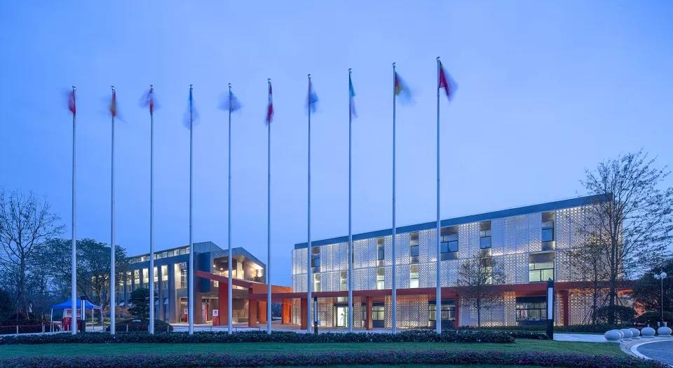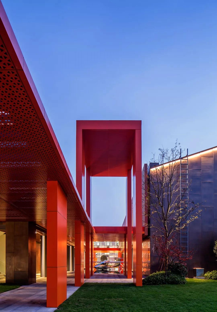 面對建機(jī)場改造項(xiàng)目,設(shè)計(jì)師并非修舊如舊,而是選擇通過工業(yè)設(shè)計(jì)的手段來解決世界工業(yè)大會(huì)會(huì)址的實(shí)用需求。所有人對這里的第一印象必然逃不開工業(yè)二字。極富質(zhì)感的表皮與肌理,鮮明的色彩沖擊,現(xiàn)代化的立面表達(dá)……一切元素與其作為世界工業(yè)設(shè)計(jì)大會(huì)永久會(huì)址的實(shí)用功能與設(shè)計(jì)初衷相得益彰。