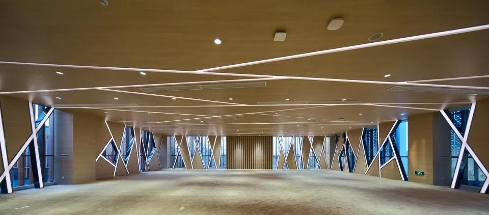 除了對建機(jī)場區(qū)域進(jìn)行建筑布局、形態(tài)的工業(yè)化改造,建筑內(nèi)部空間的人性化也是左右的設(shè)計(jì)師關(guān)注的重點(diǎn)。極賦工業(yè)質(zhì)感的光帶線條,為建筑室內(nèi)的連廊和過道營造出了具有節(jié)奏感的立面。展廳內(nèi)部墻面則由木質(zhì)表皮與玻璃墻面虛實(shí)交替,在用常規(guī)材料完成出乎意料的造型同時(shí)也為室內(nèi)引入最大程度的自然光線。工業(yè)化的鋼筋混凝土加筑形成年代感的建筑痕跡、橙色鋁網(wǎng)吊頂展現(xiàn)了現(xiàn)代感的沖突、玻璃元素拼貼成產(chǎn)生鏈接古今的空間形態(tài)。工業(yè)化作品的融入更使得建筑內(nèi)部更具有戲劇張力,呈現(xiàn)一種工業(yè)對現(xiàn)代生活影響的沖擊。