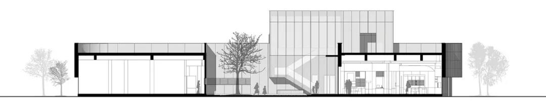 在整個設計的過程中,我們不斷探索建筑與功能之間的和諧體系,不斷探討人與空間產(chǎn)生的交互關系。從大尺度的城市界面、入口空間,到小尺度的庭院、灰空間,我們將人文關懷隱藏在低調(diào)的設計細節(jié)中,使公眾身處其中,感受的是溫馨親近的空間表情。
