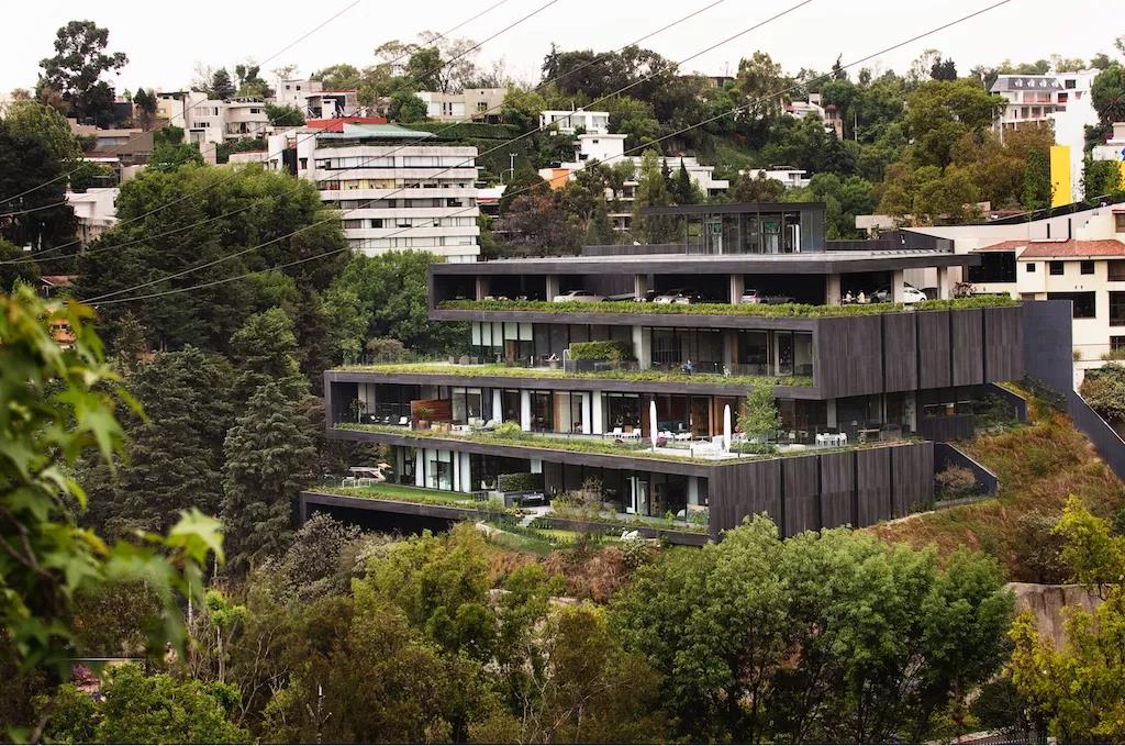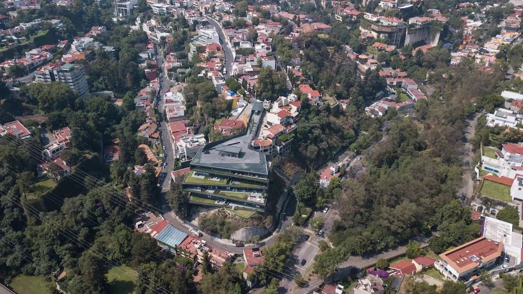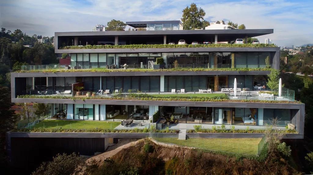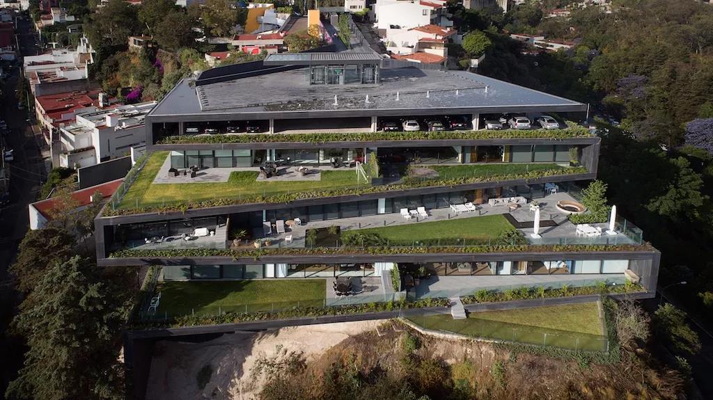 該豪華住宅項目享有墨西哥城的絕佳位置,有著無與倫比的自然環境,地塊有著十分崎嶇的地形,所以建筑盡可能的融入自然形式中。目的是尊重周圍環境,并且利用好植被之間可以看見的城市全景視野。