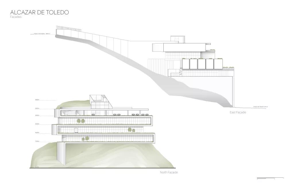 為了適應地面,四層折疊之后建筑體量轉變為結構元素(像一個墻或者板)或是開放的廣場或露臺。該設計創造了一個優雅且精妙的形體,它在當地文脈的植物中形成清晰的水平向分隔。