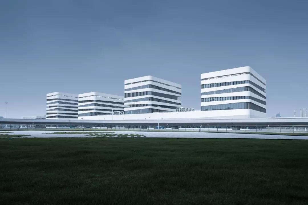 口岸辦公區分為南北兩塊用地,用地規整,四棟政府辦公建筑南北向一字排開。北地塊設計有三棟塔樓,在二層位置用架空裙房連接,裙房部分為非現場綜合報關報檢大廳,架空部分為社會車輛停車場;南地塊設計獨立式辦公樓一棟,二層西側靠海位置設計架空風雨廊與北地塊綜合大廳西側半室外風雨廊相通。架空層的設計使得建筑群更加通風,一方面減少臺風對建筑的影響,一方面讓建筑物更加陰涼。南北地塊實現一體化設計,口岸辦公區體量齊整輕盈,干凈利落。