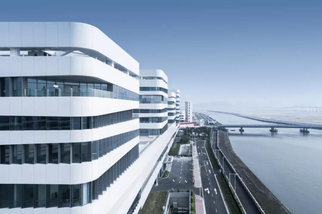 如果說港珠澳大橋珠海人工島像一艘2平方公里的航母,口岸辦公區的建筑群就好像立于船舷,身著海魂衫的水兵;如果說珠海旅檢樓是人工島上當仁不讓的主角,那么口岸辦公區,將是人工島上賞心悅目的“最美的配角”。