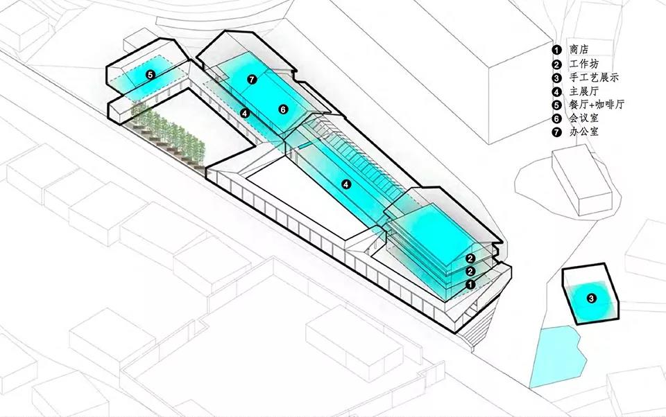糧倉和周邊舊建筑通過墻面翻修及室內改造,整理為以地方手工藝和農產品展示、宣教為主的文化空間。并包括工作坊、藝術家駐場工作站、餐飲禮品等附屬設施。