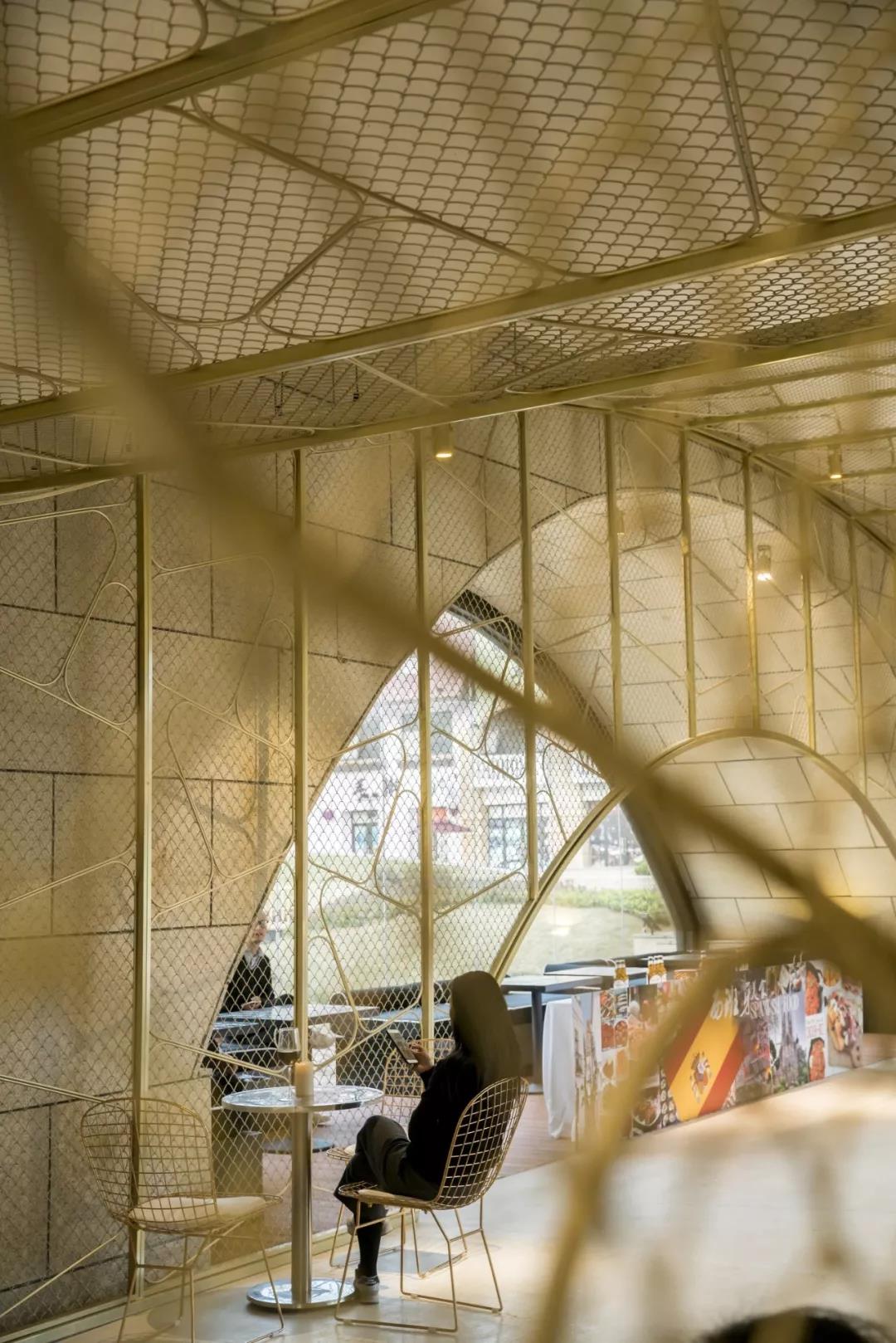 內部空間根據不同需求靈活組合,成為商業街上人流凝聚的一個主題元素空間,加強了來商業街里人們之間的聯系,讓消費者產生一種心靈上的對話,一種情感上的互動。開放的橋洞,為室內展現了不同角度室外風景,同時也為室內帶來了充足的自然采光。