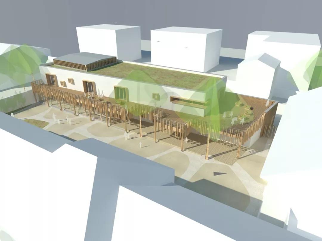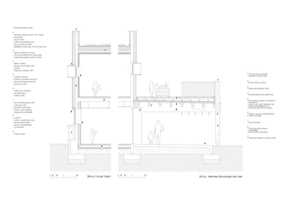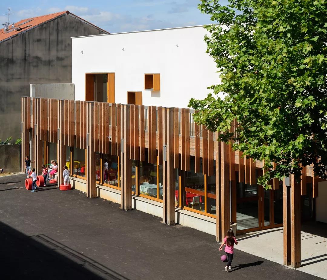 項目地址位于市中心的密集城市肌理中,是現有學校組團的院落。為兒童預留的室外場地被現存的L形的朱爾·費里(Jules Ferry)的建筑限定,場地中有兩株優美的懸鈴木。