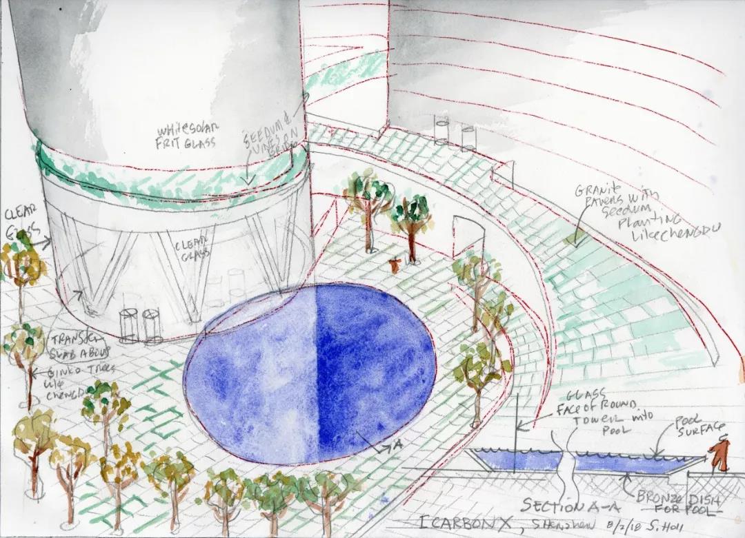 斯蒂芬·霍爾建筑事務所(STEVEN HOLL ARCHITECTS )贏得了深圳基因智能公司碳云智能(iCarbonX)總部的設計競賽。受基因和DNA研究的啟發,霍爾事務所采用兩座塔樓的設計造型。其中A座是住宅,B座是寫字樓,包括了辦公室、實驗室和公共接待處,通過建筑設計將“碳云智能的使命——破界而生”表現出來。