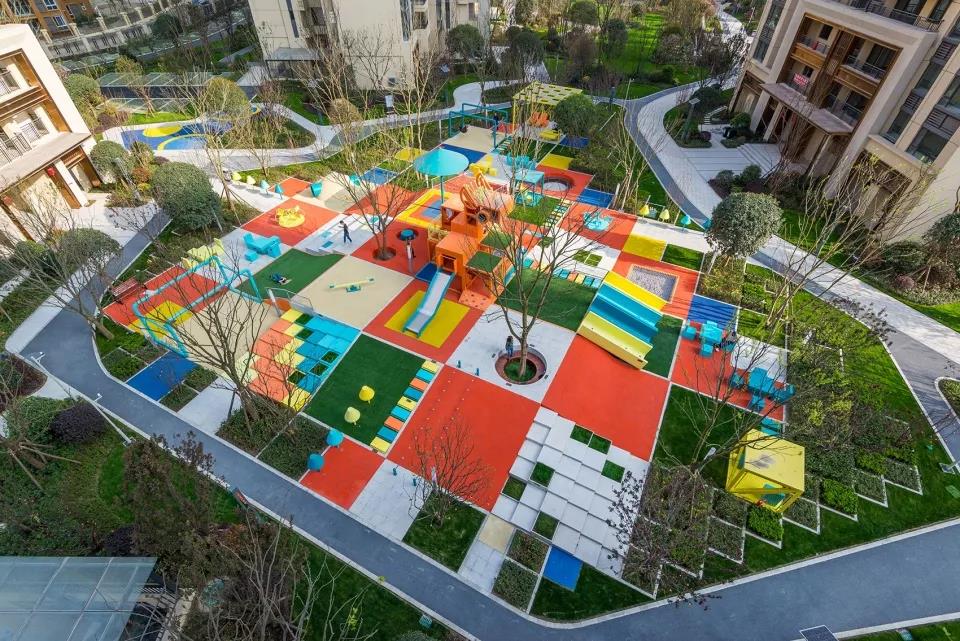 樂園局部,小像素的綠色植物圍繞在廣場周圍以提供私密***和安全屏障