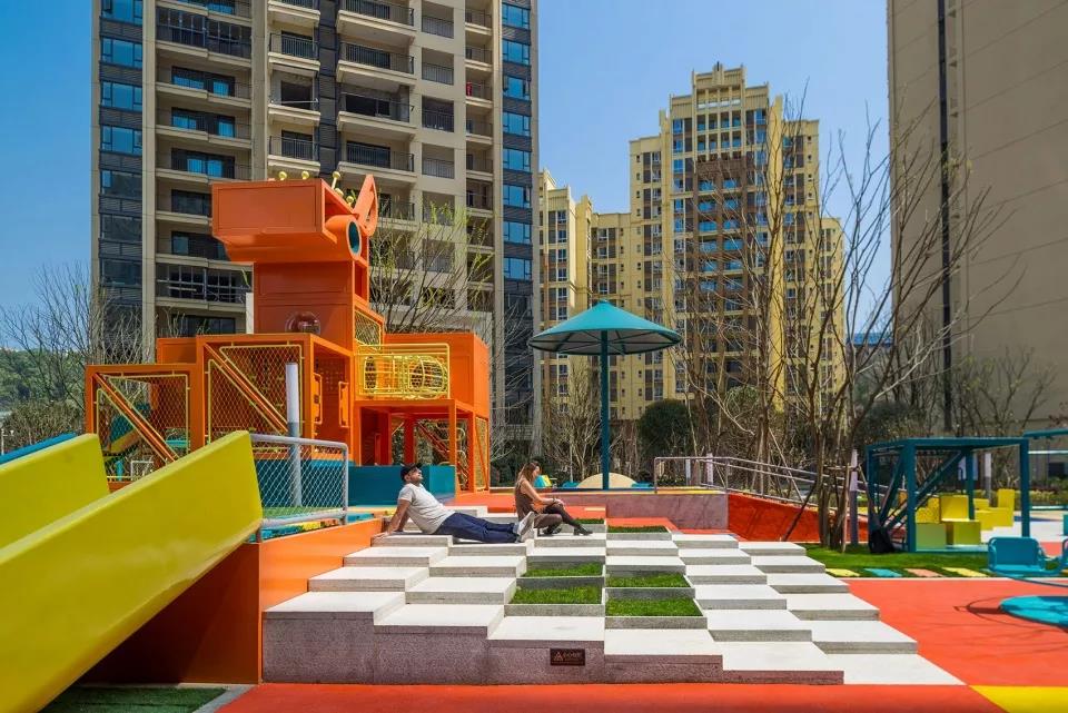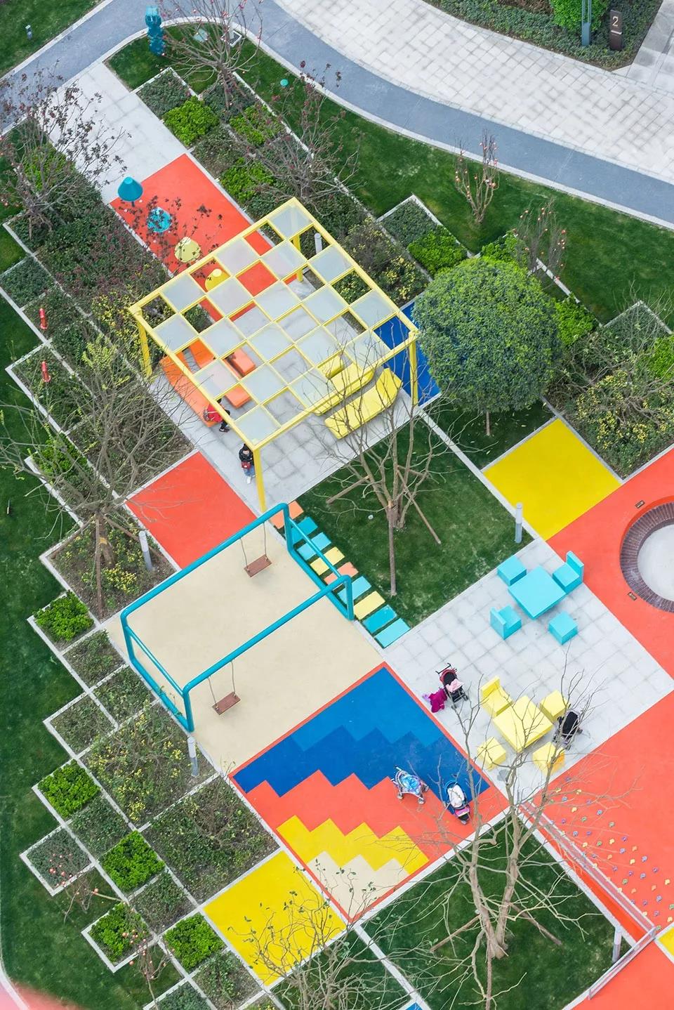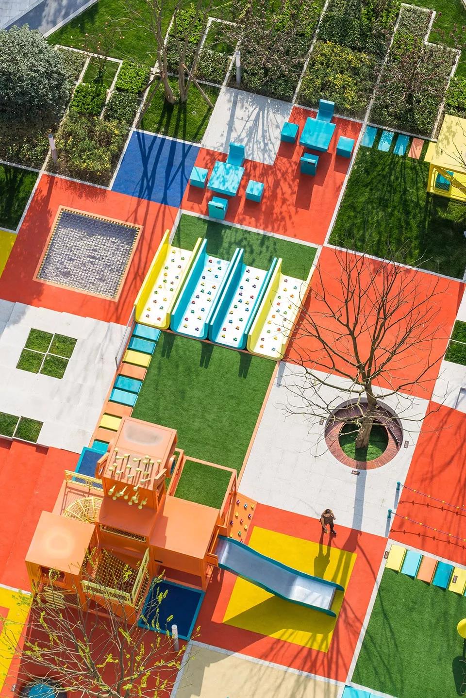 中央主題游樂場及退臺狀的像素休息區(qū)