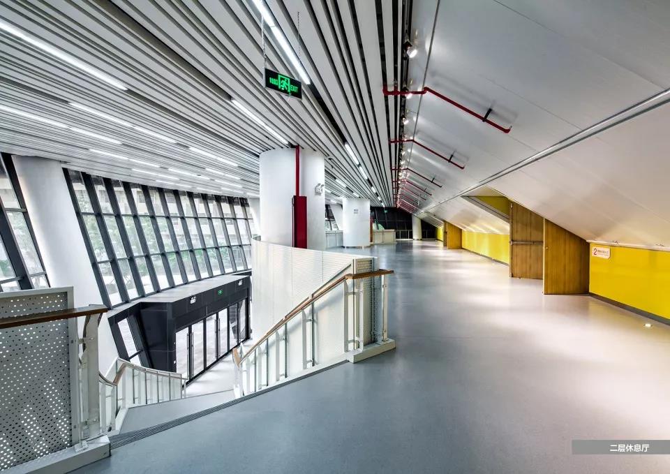 體育館二層在露天平臺(tái)上設(shè)計(jì)了一處咖啡吧,面對(duì)綠色操場(chǎng),視線開(kāi)闊,一覽無(wú)余。整個(gè)建筑功能多元,在有限的用地上,充分挖掘空間潛力,合理高效的為師生打造出最多的活動(dòng)使用場(chǎng)所。