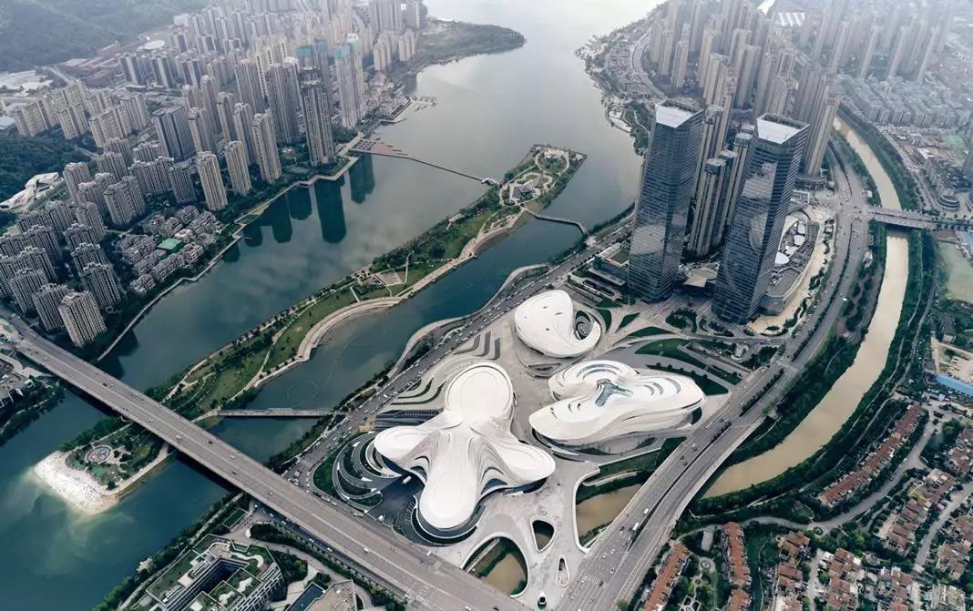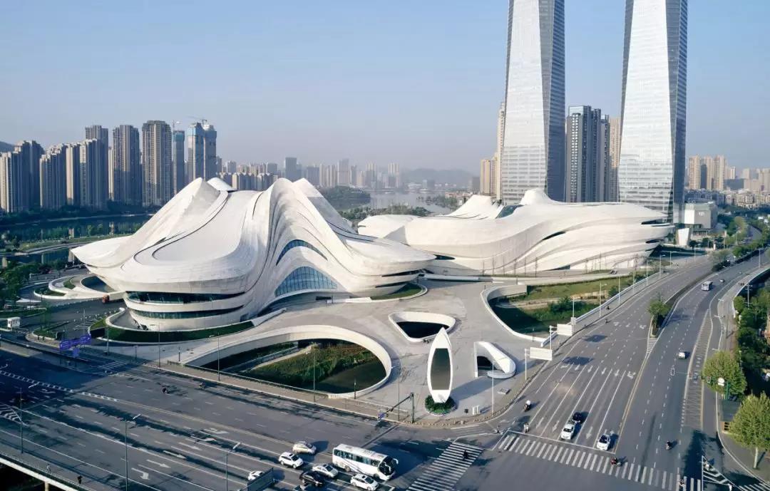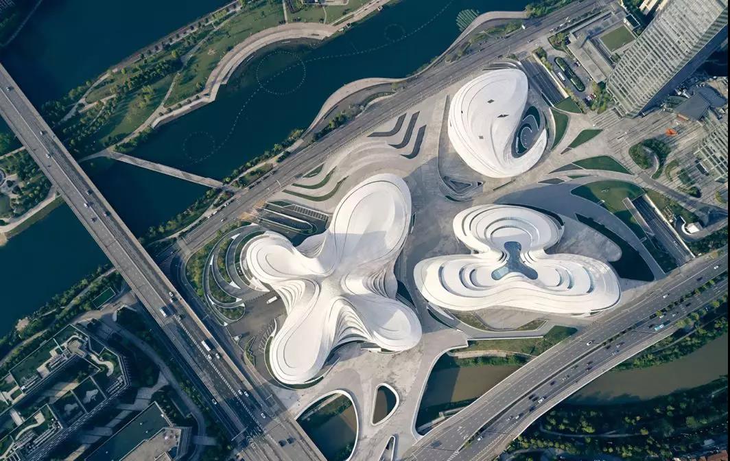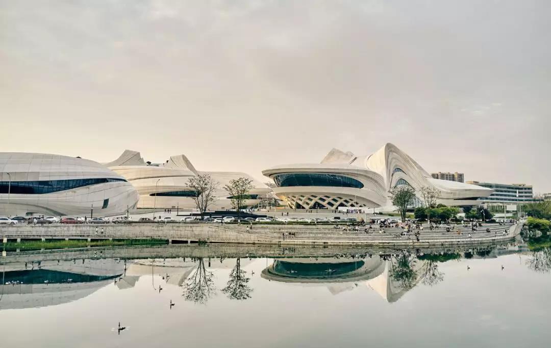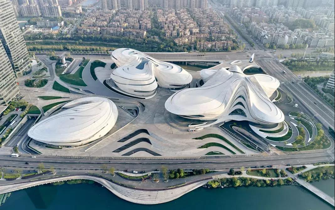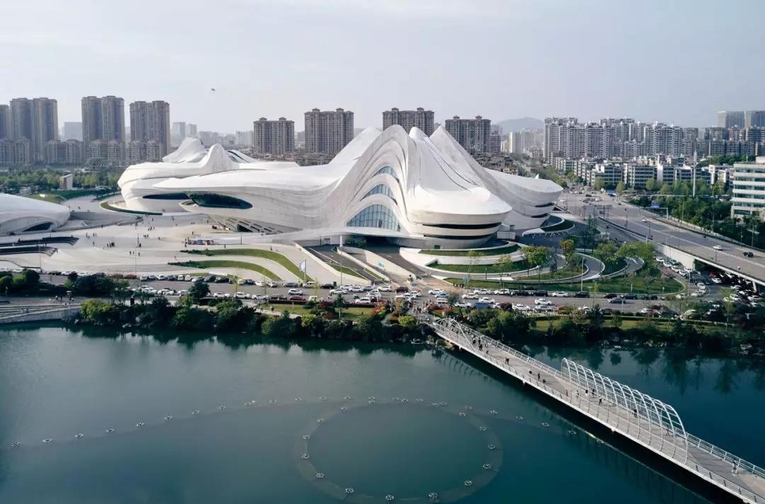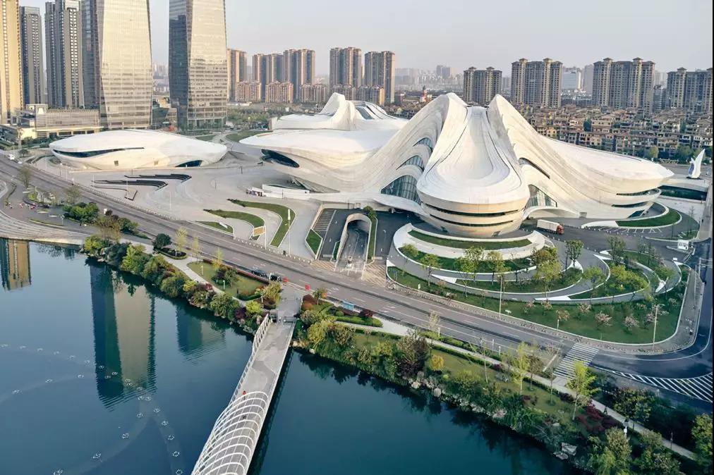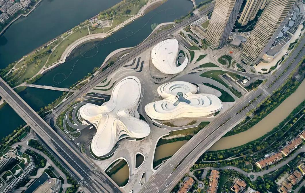 扎哈·哈迪德事務所在長沙梅溪湖設計的國際文化藝術中心接近完工。這個建筑面積高達 11.5 萬平方米的文化綜合體涵蓋了一個劇院和一個現代藝術博物館,在三個花瓣狀的體塊中間,扎哈·哈迪德事務所還設計了一個小的多功能場地。