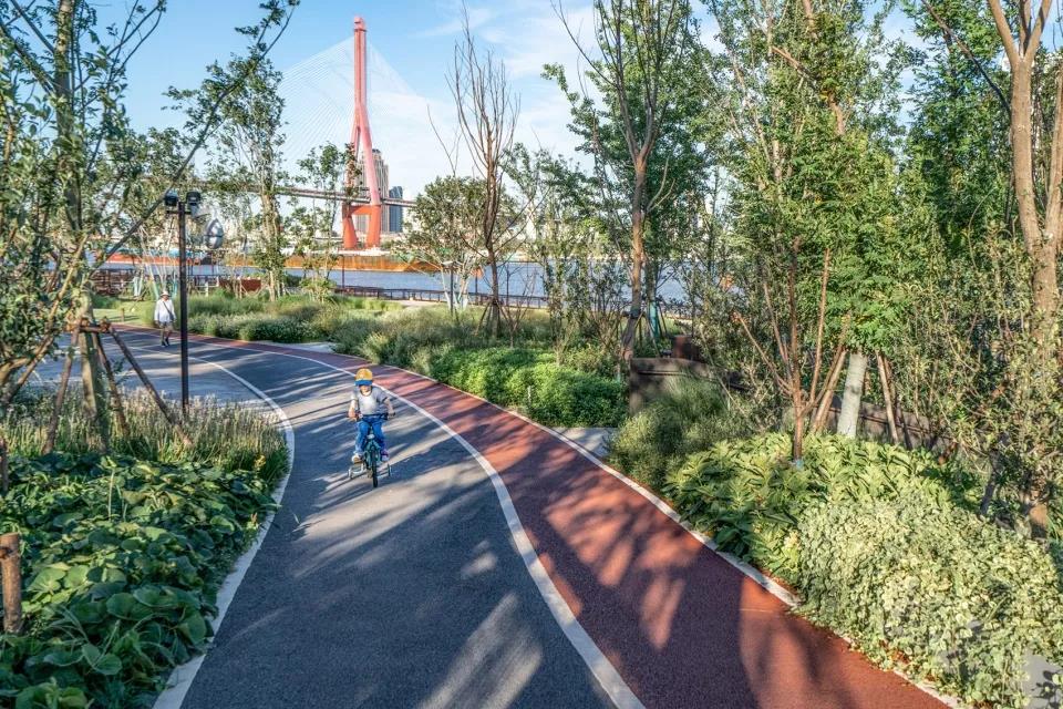 類似上海這樣的高密度大城市通常缺少開放空間,更缺少可供戶外鍛煉的場所。三道重新定義了濱江公共空間,并倡導了一種更健康的生活方式。專用顏色噴涂的跑步道和騎行道,吸引了越來越多的人選擇來江邊健身。