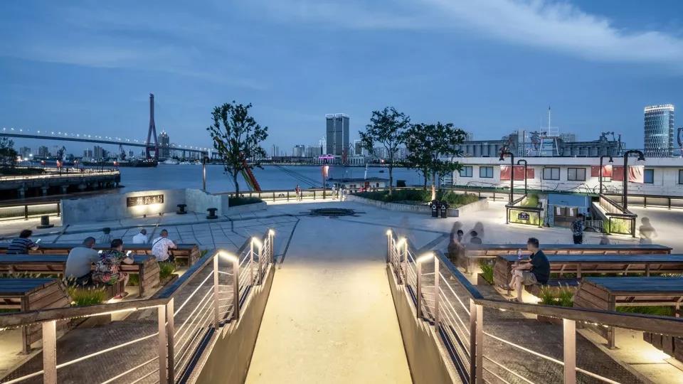 面對江面的6%草坡,可供人們舒適地欣賞黃浦江美麗的城市天際線。新的防汛體系以彈性的方式在減少臺風和暴雨威脅的同時,豐富了景觀地形的變化。