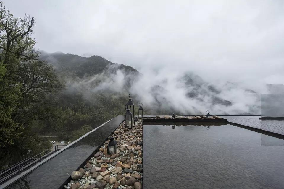 33間客房,配備接待大堂、圖書閱覽、餐廳廚房、恒溫泳池的公共區域,2688㎡的建筑面積,對于一個山間民宿無疑已是巨大的體量。