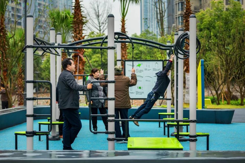 據相關部門統計,重慶心湖北體育文化公園自開放后,日均人流量達到3300多人次,除了周邊居民,街道、學校也常常來此舉辦活動。從住區到社區,從公有到共有,邊角公園進一步擴大人與人的交往空間,提供了更多樣的生活方式。