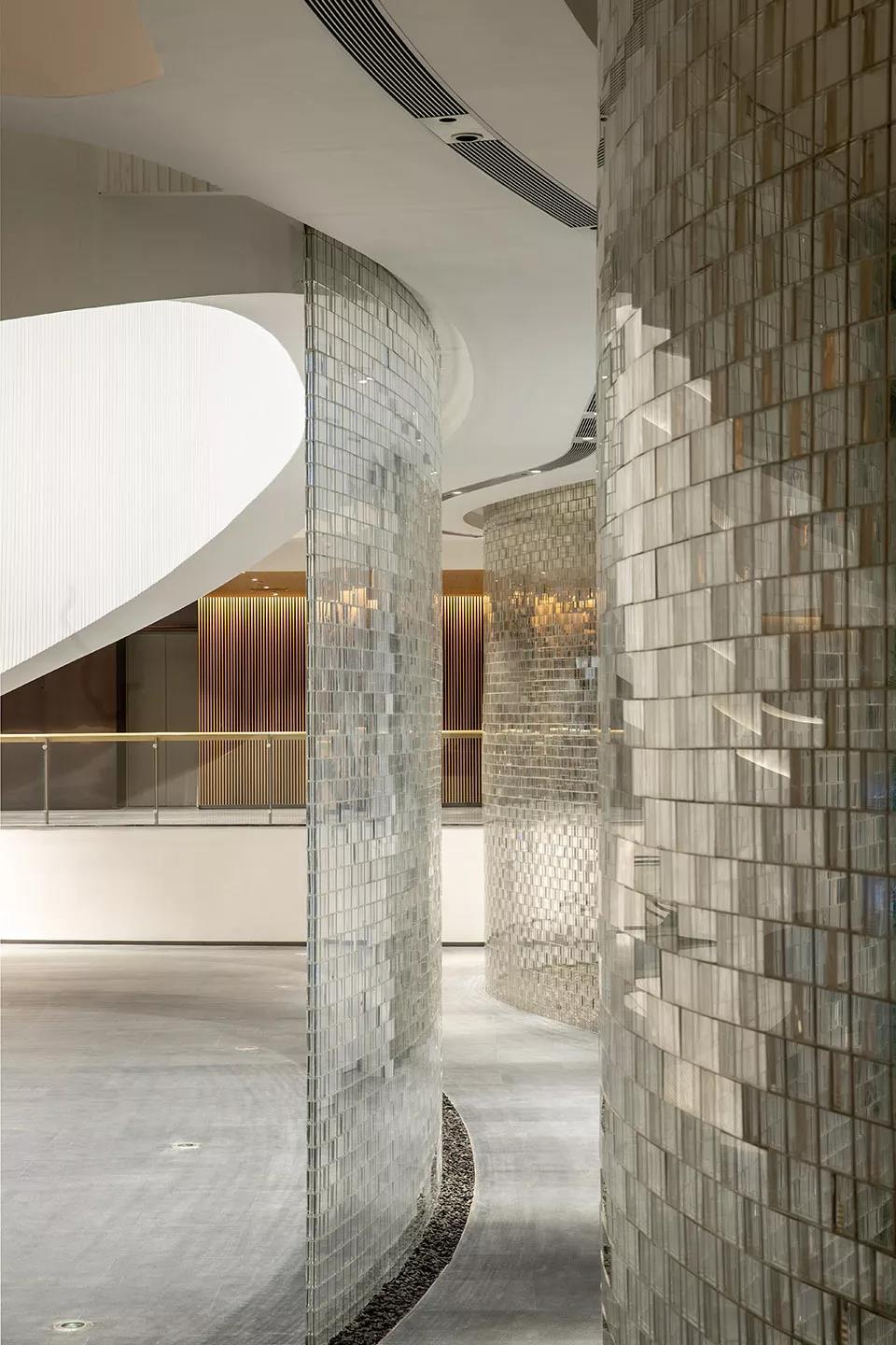 玻璃磚的透明和反射性特質使其呈現出水面般的波光